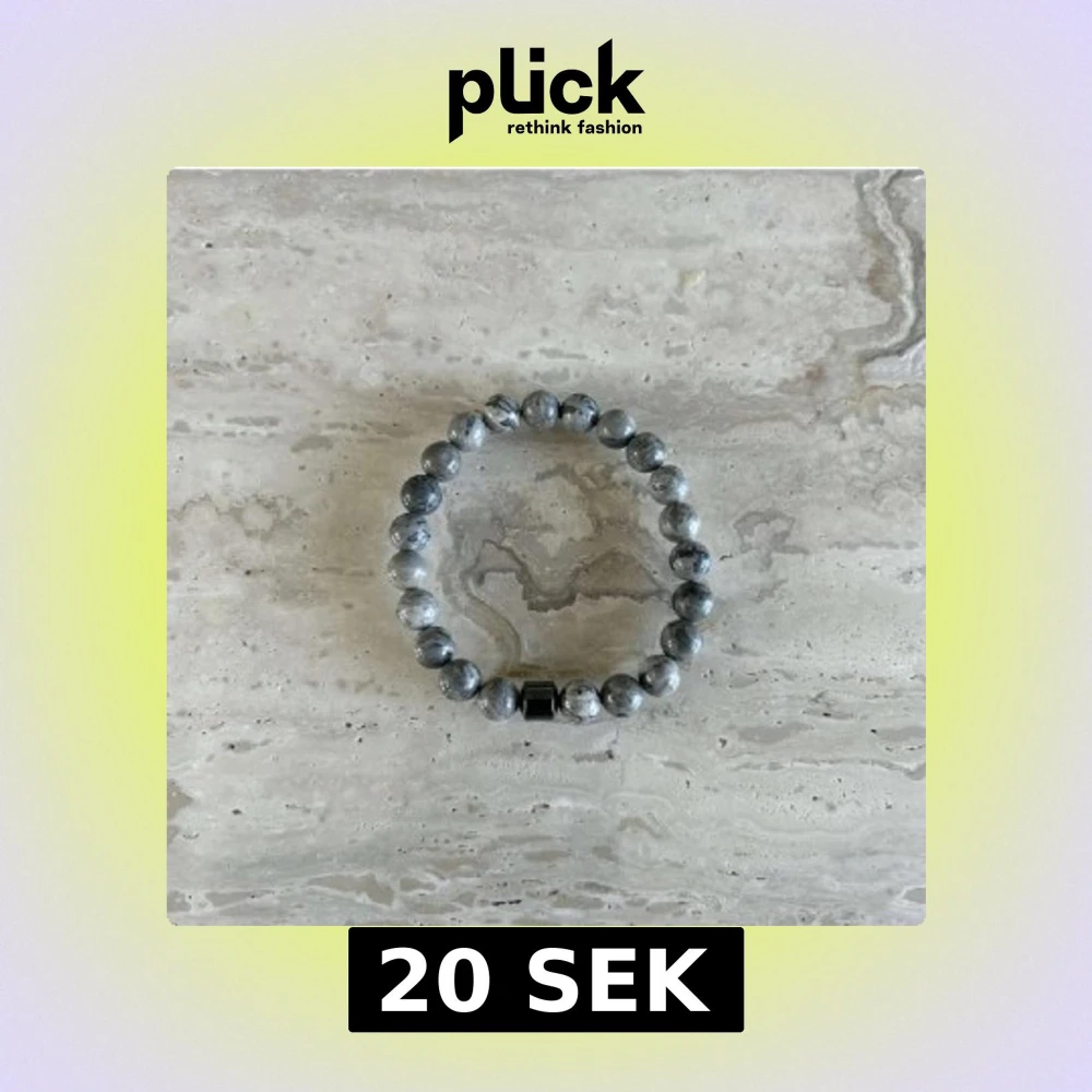 Snyggt armband med gråa stenar i en elastisk design. Perfekt för att ge en stilren touch till din outfit. Stenarna har en marmorerad effekt som ger en unik look.