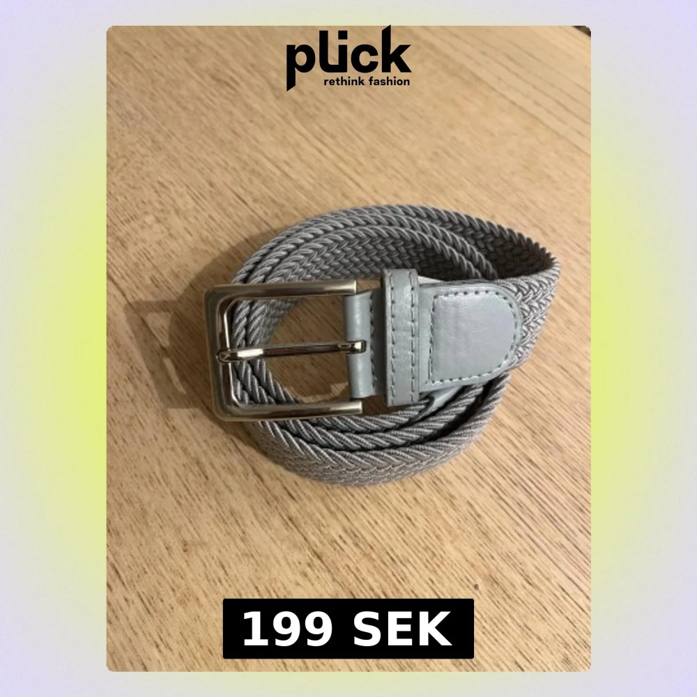 Fräscht grått flätat bälte som både lyfter outfiten och byxorna, 110 cm (elastiskt). Små tecken på användning. Tveka inte att höra av dig med funderingar!