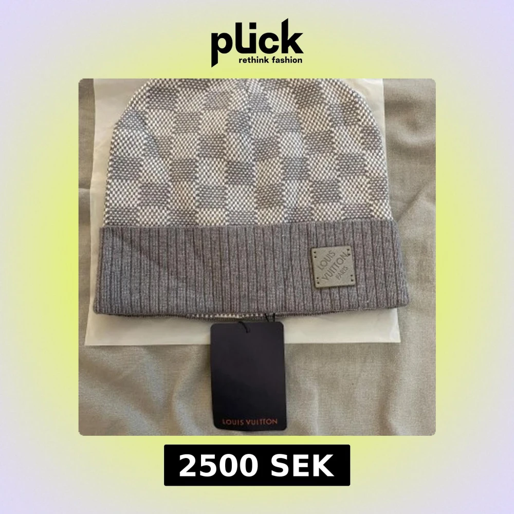 Snygg och exklusiv mössa från Louis Vuitton i grått och vitt med klassiskt rutigt mönster. Mössan är stickad och har en ribbad uppvikt kant med en diskret Louis Vuitton-patch framtill. Perfekt accessoar för att lyfta din vinterstil.
