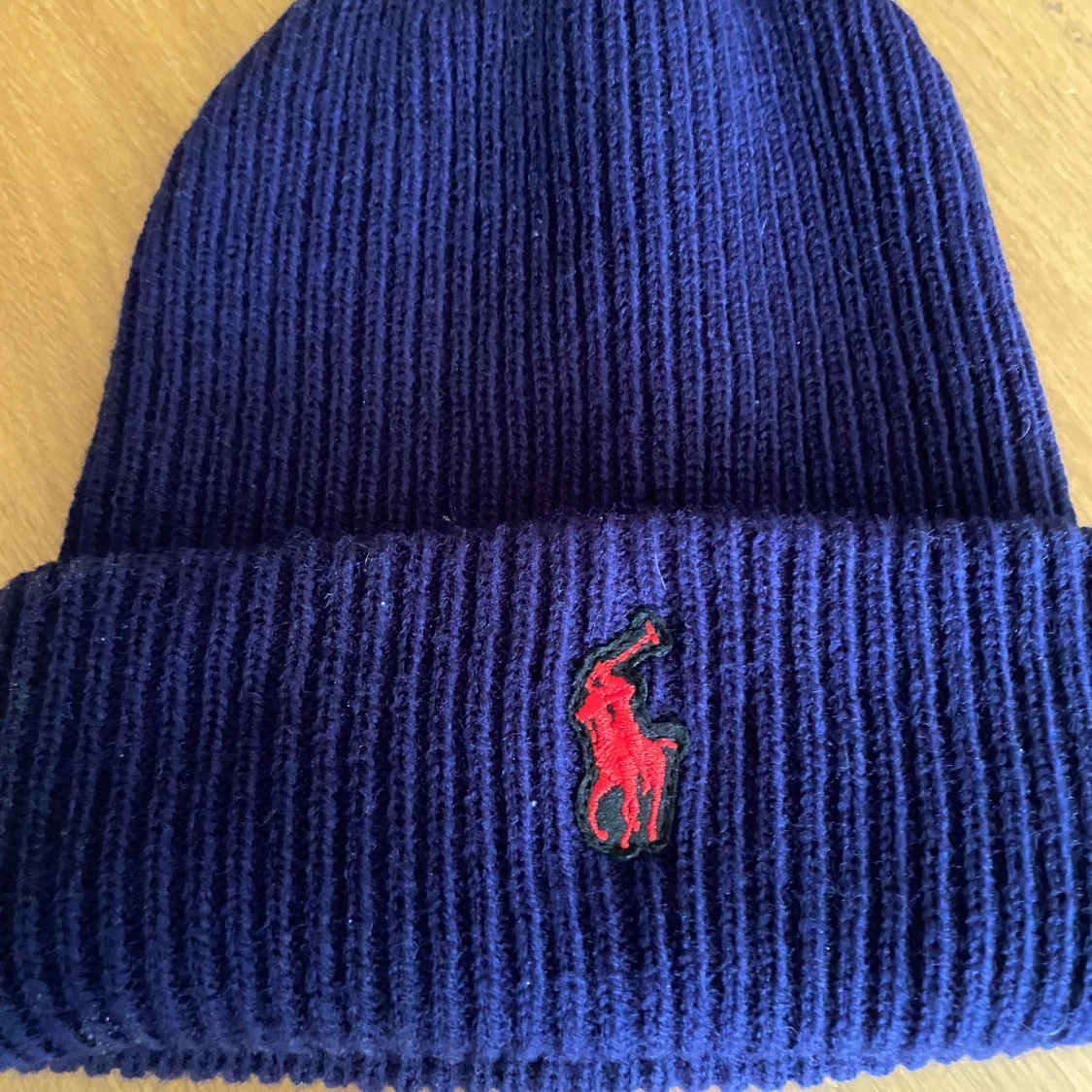 Snygg mörkblå ribbstickad mössa från Polo Ralph Lauren med klassisk röd broderad logga framtill. Perfekt för kalla dagar och enkel att matcha med olika outfits. Tjockt och mjukt material som håller dig varm.