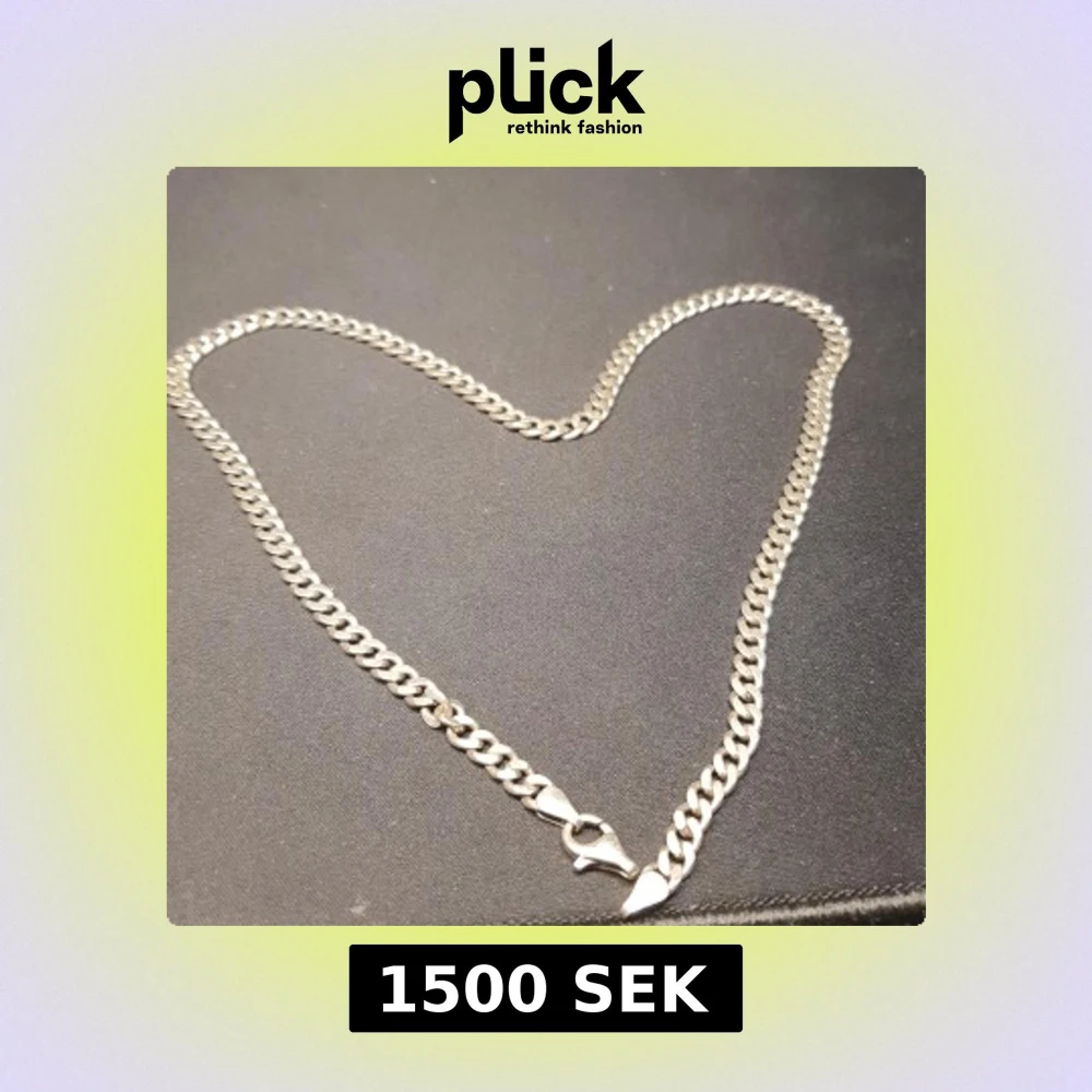 Snyggt silverfärgat halsband med en robust karbinhake. Kedjan har en klassisk design med platta länkar som ger en stilren look. Perfekt för att komplettera din outfit med en touch av elegans.