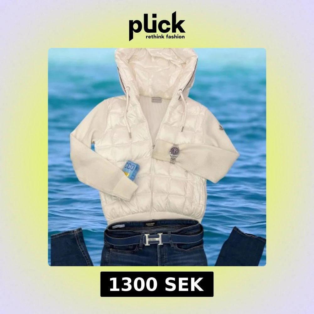 Vit moncler cardigan i stl s passar xs bättre, sparsamt använd finns bara en liten grå fläck inuti men syns inte 👀när man har på den 🙌, köpt på plick innan för 1700kr. då det är en replika! Pris är inte hugget i sten 🪨 kom med bud, byte eller skriv vid det minsta 🤏byter helst mot en Ralph lauren puffer jacka 🧥 start pris 1300kr 💵