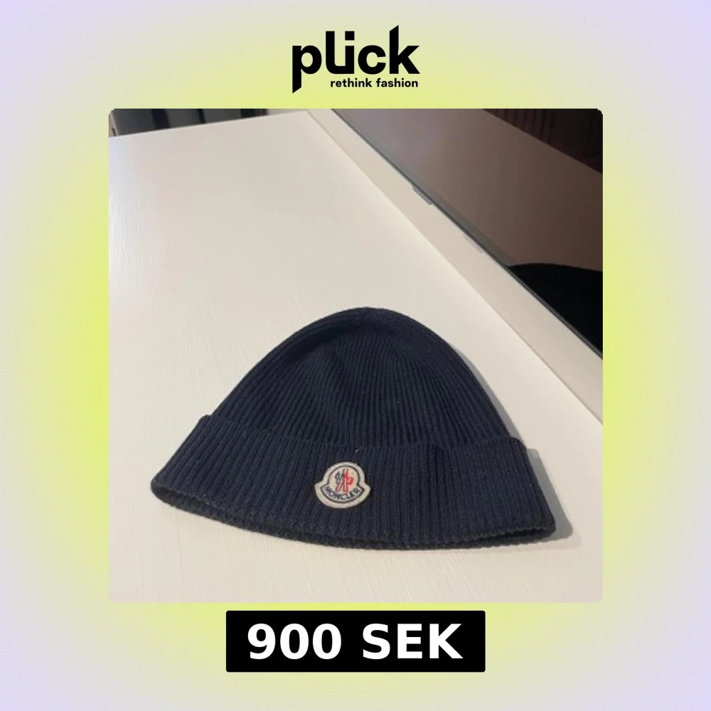 Snygg mörkblå ribbad mössa från Moncler. Perfekt nu till vintern och ger en stilren look. Passar både till vardags och mer uppklädda tillfällen.