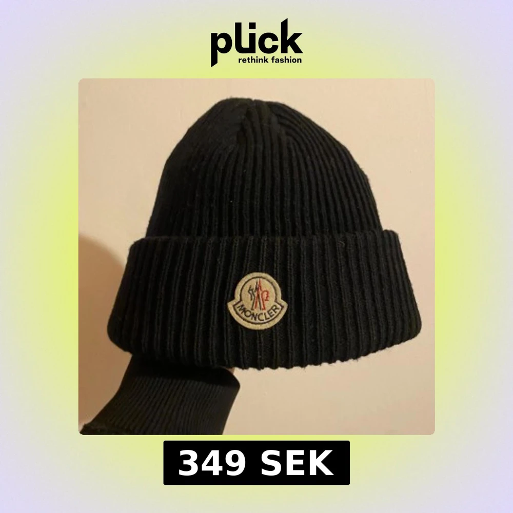 Snygg svart ribbad mössa från Moncler med deras ikoniska logotyp framtill. Perfekt för att hålla värmen under kyliga dagar.