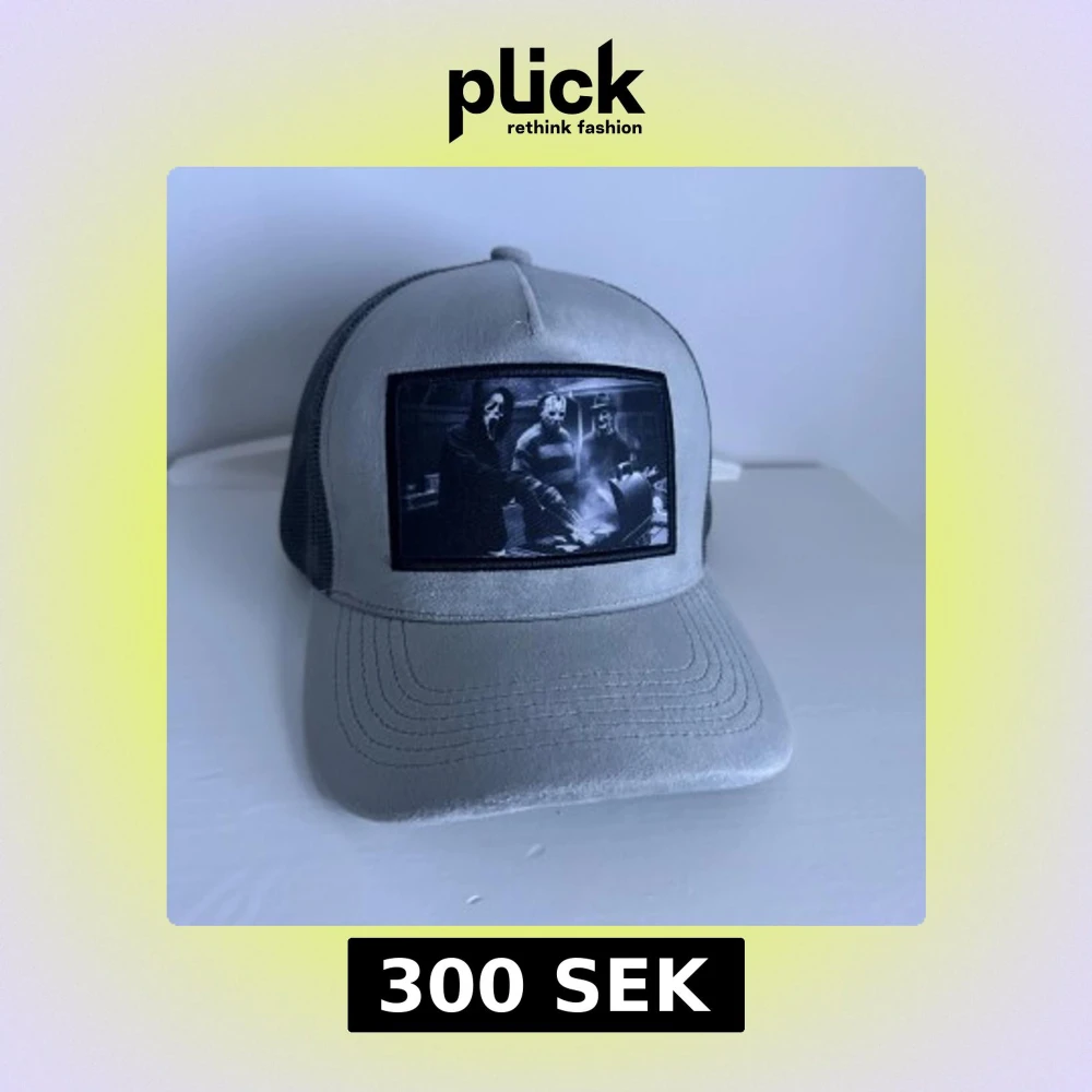 Snygg grå keps med svart mesh på baksidan och justerbar snapback. Framtill finns ett svartvitt patch med motiv från klassiska skräckfilmer, bland annat Ghostface och Jason. Perfekt för dig som gillar film eller vill sticka ut med en unik accessoar.