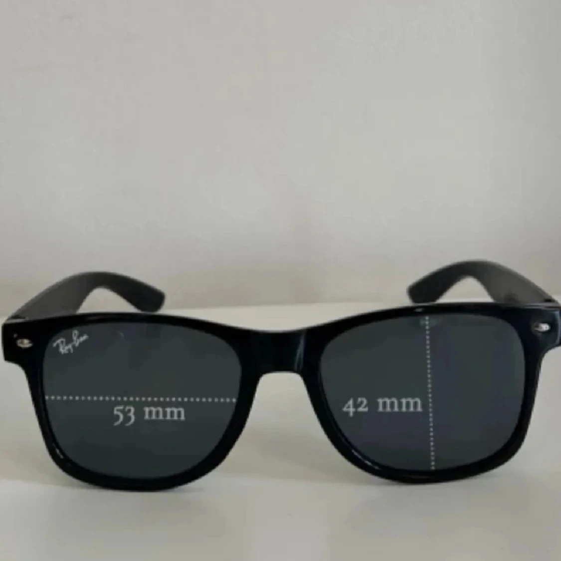 Helt nya solglasögon. Mindre model utav Wayfarer. Väldigt bra pris så först till kvarn😁 måtten på sista bilden. Ej äkta