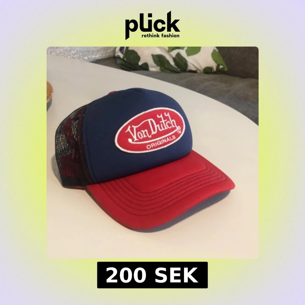 Säljer en snygg truckerkeps från Von Dutch i blått och rött med broderad logga framtill och mesh på sidorna. Justerbar baktill för perfekt passform. Kepsen har även en liten Von Dutch 99-detalj på sidan.