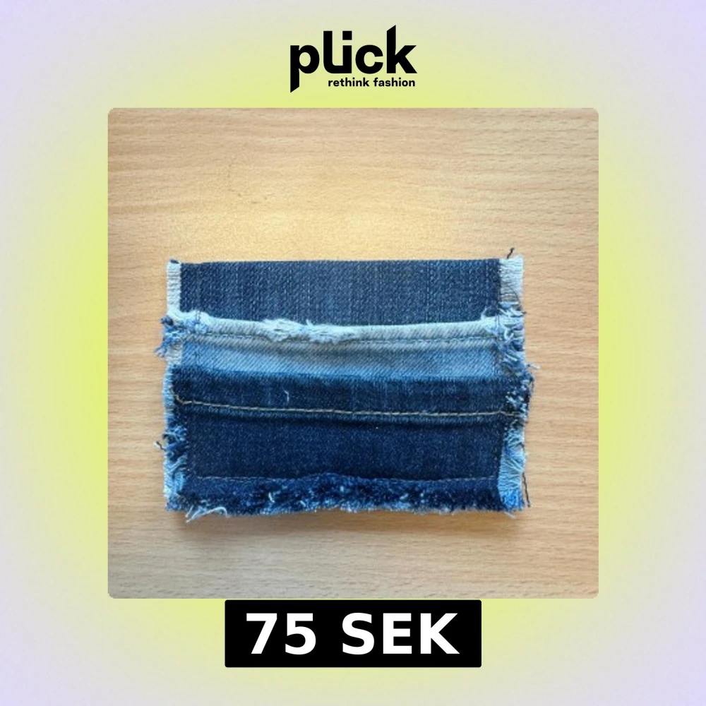 Unik plånbok sydd av återvunna jeansbitar med råa kanter och flera nyanser av blått. Perfekt för dig som gillar en personlig och kreativ stil. Plånboken är kompakt och får plats i fickan eller väskan.