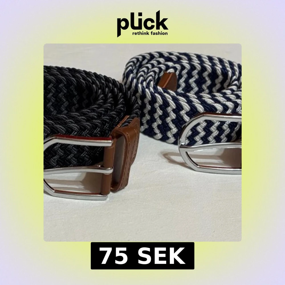 Flätade herrbälten i olika färger: svart/grå, blå/svart och blå/vit. Bältena har ett randigt mönster, bruna skinn-detaljer och ett stilrent silverfärgat spänne. Perfekt accessoar för att lyfta din grisch outfit.
