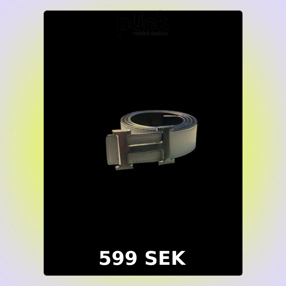 Säljer ett stilrent vändbart bälte i vitt och svart med ett stort H-format metallspänne. Bältet är i slätt material på den vita sidan och har en mer texturerad yta på den svarta sidan. Perfekt accessoar för att lyfta din outfit.