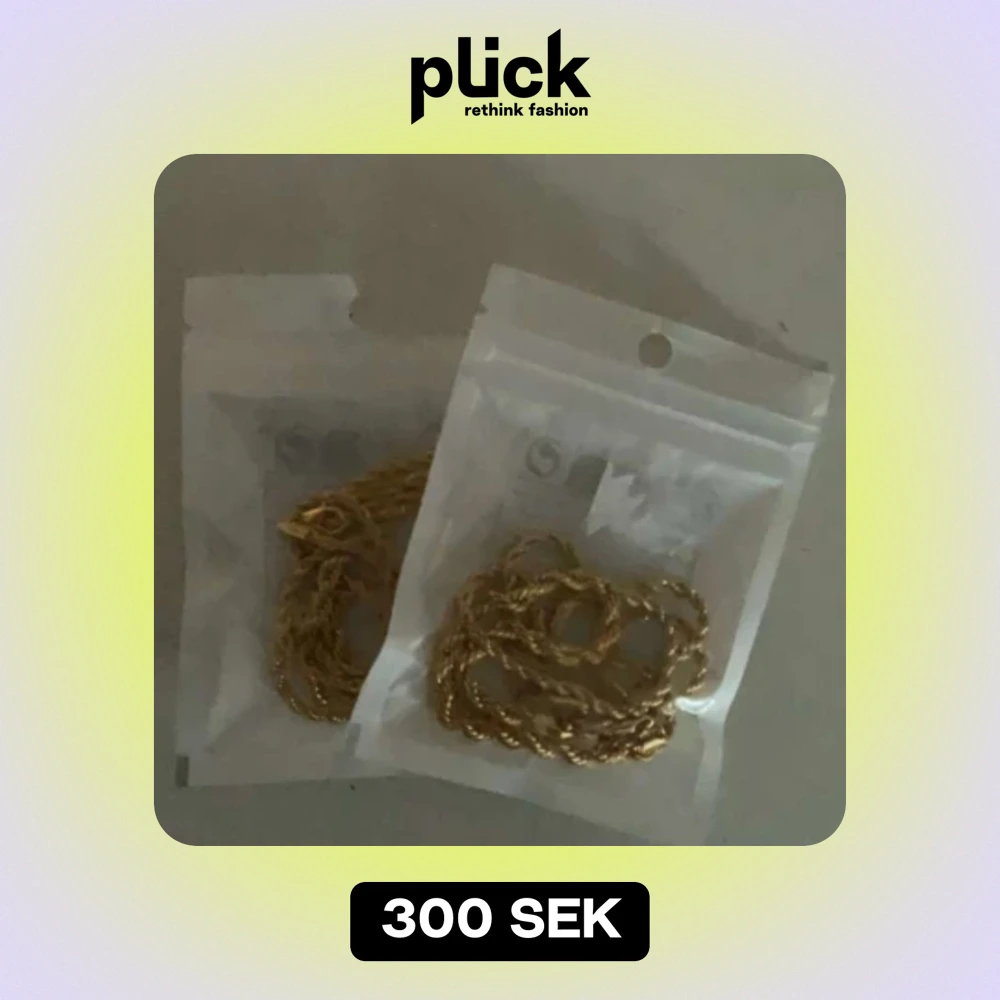 Säljer två snygga guldpläterade halsband med en vriden design. Perfekta för att ge en elegant touch till vilken outfit som helst. Halsbanden är nya och kommer i sina originalförpackningar. Kan köpas seperat också