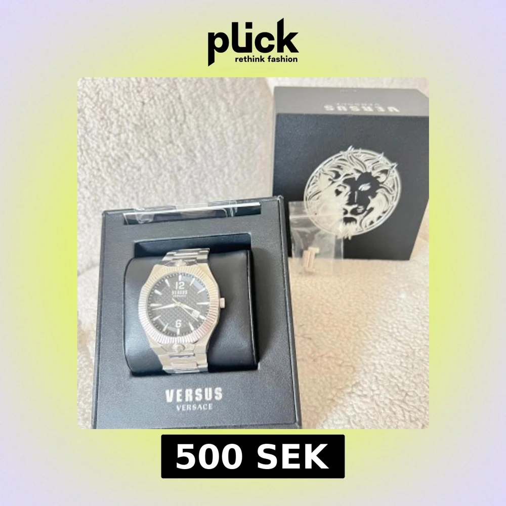 Stilren klocka från Versus Versace med en silverfärgad metallarmband och svart urtavla. Klockan har tydliga siffror och märkets logotyp på urtavlan. Levereras i originalförpackning med tillbehör.