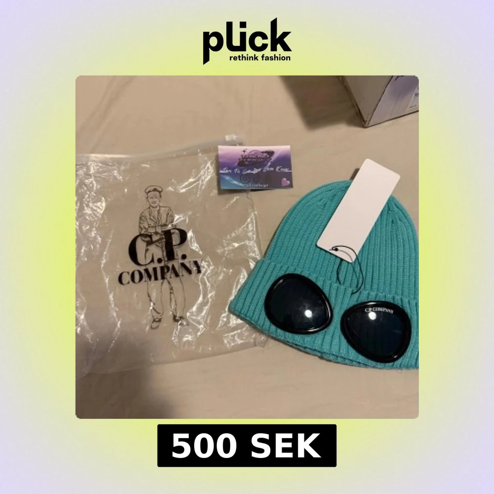 Snygg turkos mössa från C.P. Company med ribbad design och inbyggda glasögon. Perfekt för att sticka ut i mängden och hålla sig varm. Glasögonen är svarta och pryds av C.P. Company-loggan.