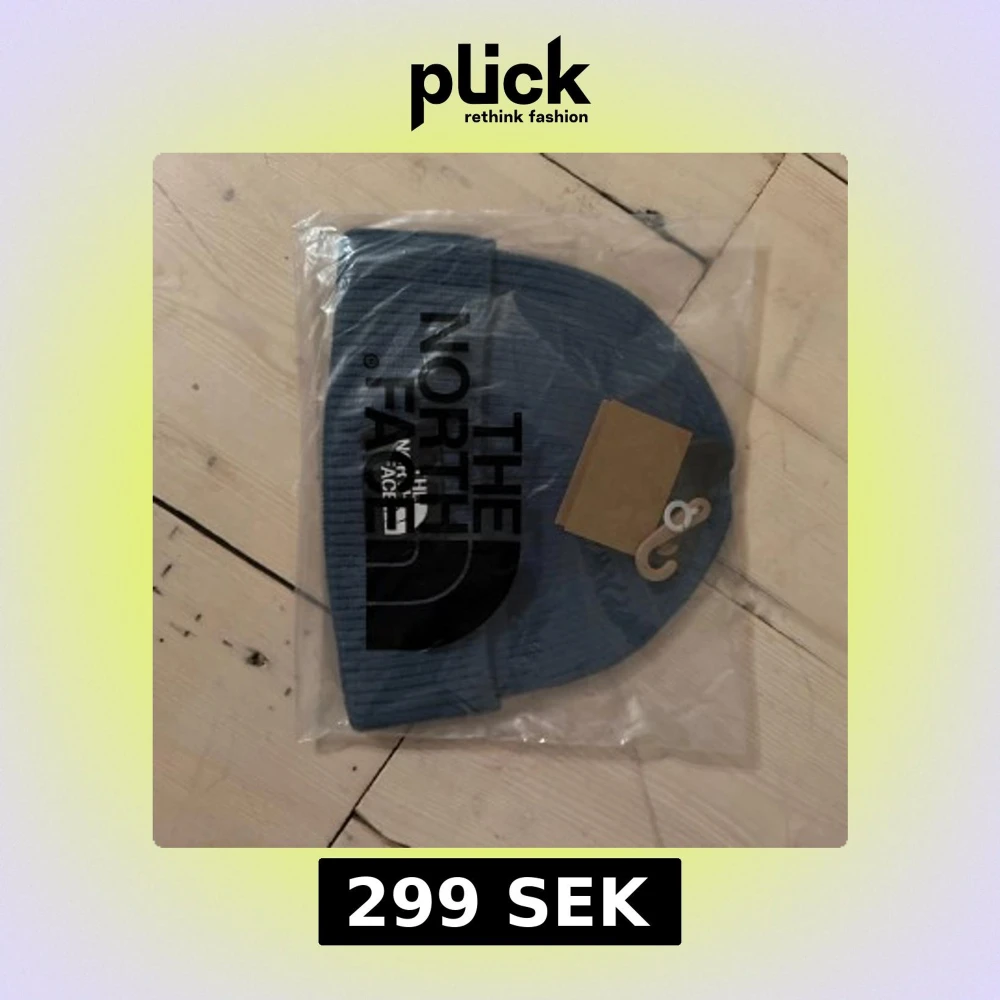 Snygg blå ribbstickad mössa från The North Face med uppvikt kant och stor svart logga framtill. Perfekt för kalla dagar och enkel att matcha med olika outfits. Klassisk och stilren design som funkar året runt.
