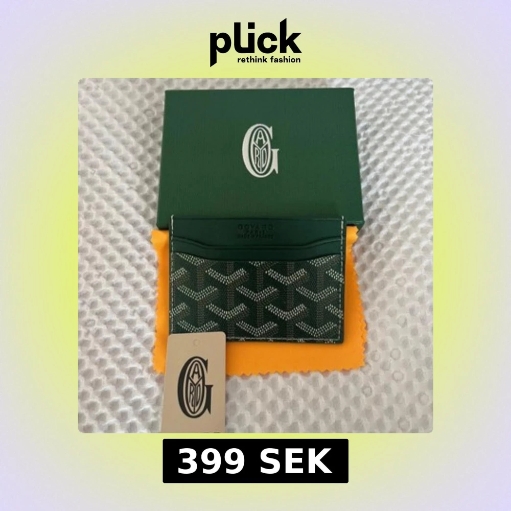 Säljer en elegant grön plånbok från Goy med det ikoniska mönstret. Plånboken har flera fack för kort och är perfekt för att hålla dina tillhörigheter organiserade. Den kommer i en snygg grön förpackning. Serienummer: CHN 020162