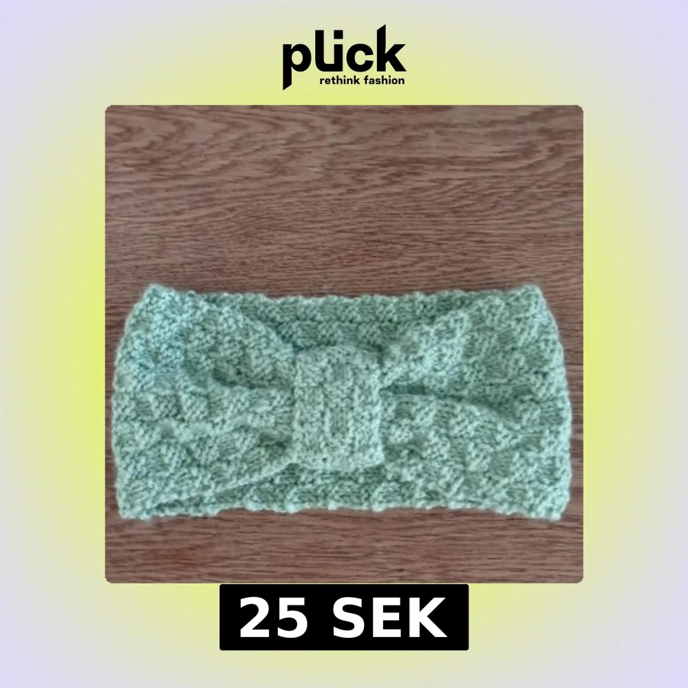 Snyggt grönt virkad pannband med ett fint mönster och en dekorativ knut framtill. Perfekt för att värma öronen och ge en stilfull touch till din outfit. Hemvrirkad