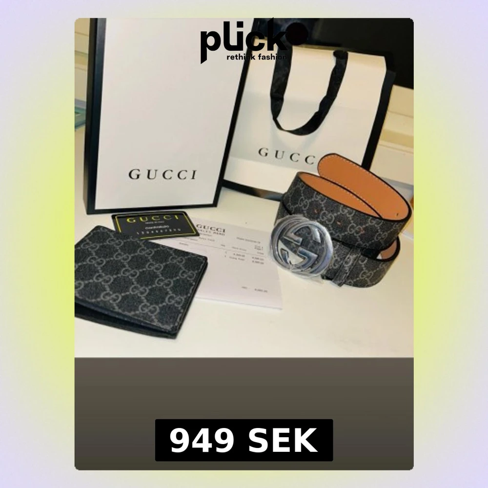 Säljer ett helt nytt Gucci-bälte och en matchande Gucci-plånbok i GG Supreme canvas. Båda är helt oanvända och endast uppackade för bilder. Allt kommer komplett med originalbox, påse, kontrollkort och kvitto från butik (nypris 4980 HKD för bältet). Jag är aktiv här på Plick och svarar snabbt, samt fraktar direkt samma dag som köp. Perfekt set som present eller för dig som vill höja din stil. Skriv vid intresse!
