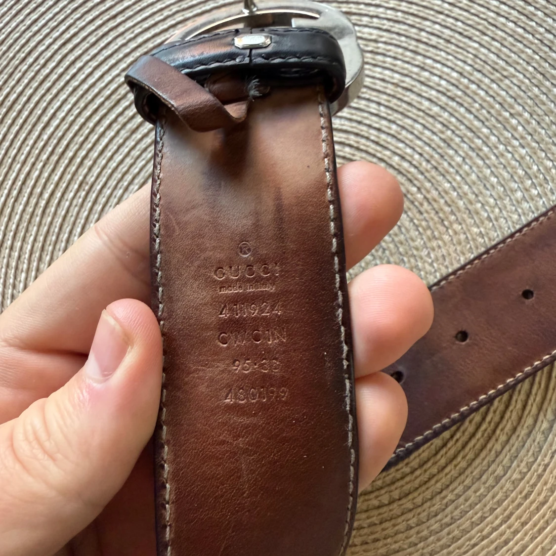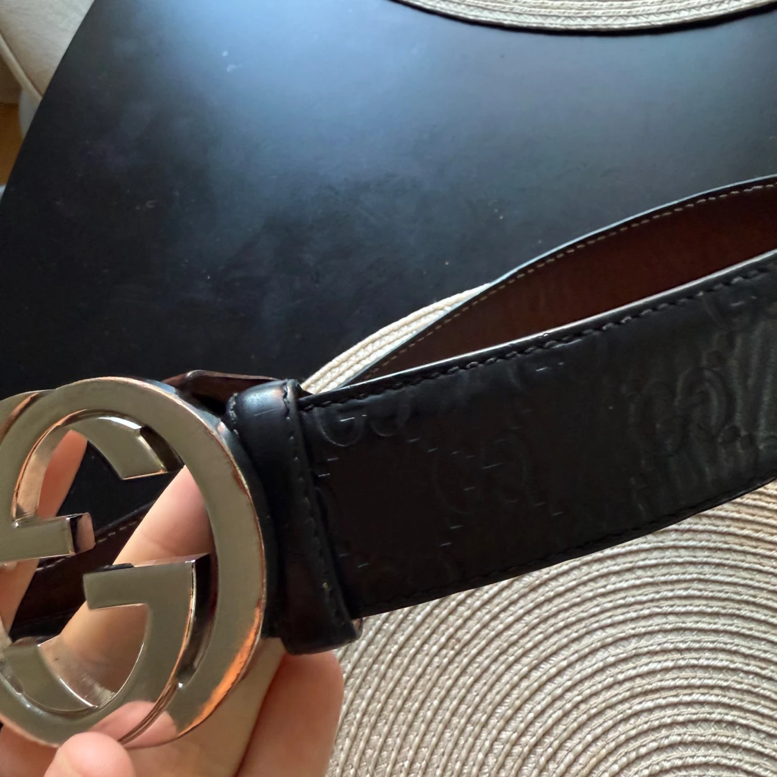 Gucci skärp black monogram läder. 95 cm 1 extra hål har gjorts