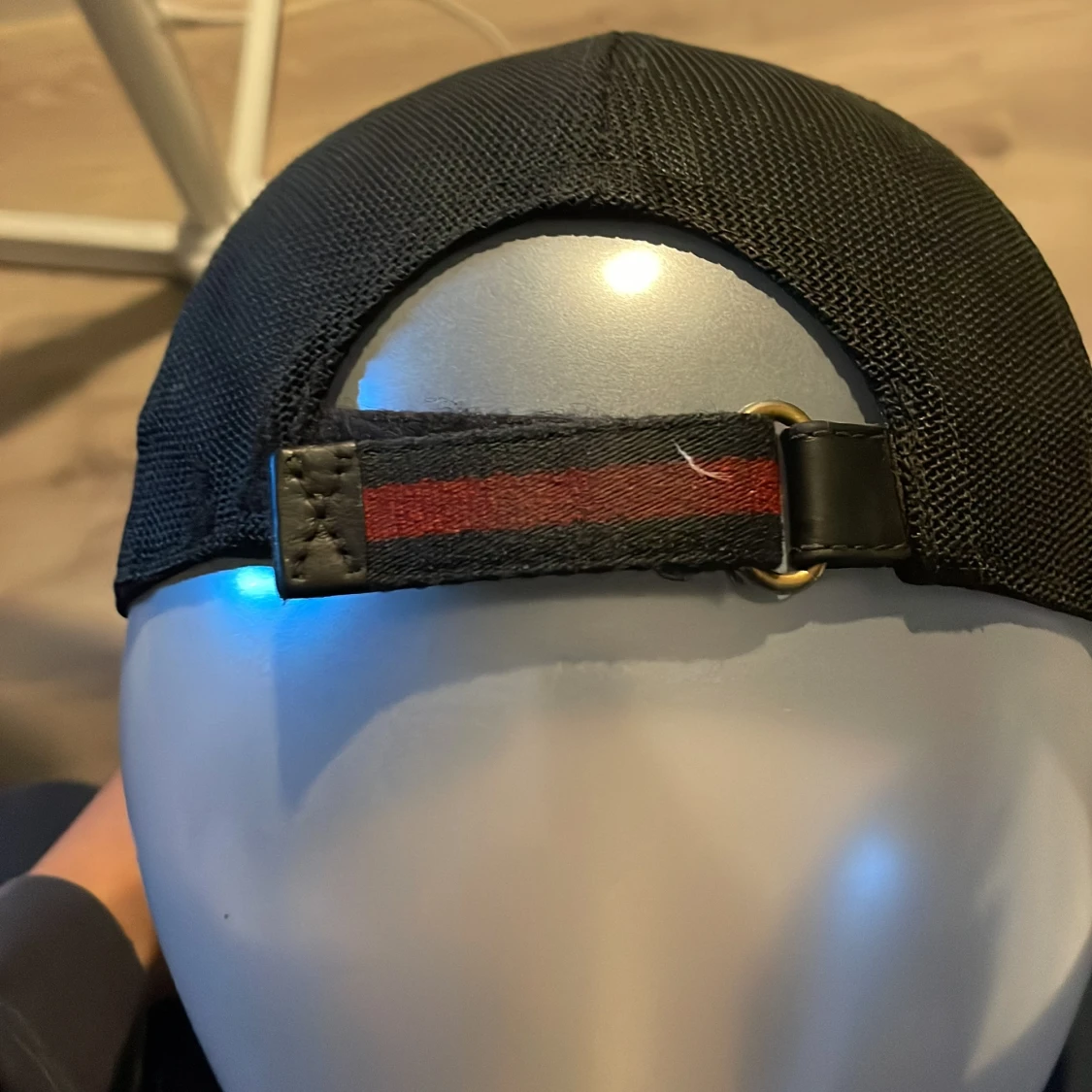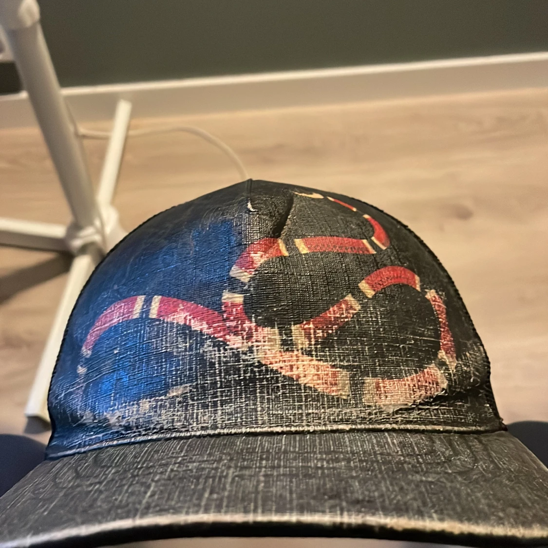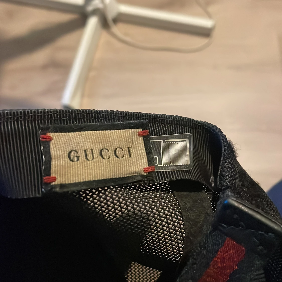 Svart keps från Gucci med ikoniskt röd och beige ormtryck framtill. Baksidan har justerbart band med röd och svart randig detalj. Kepsen är tillverkad i mesh och syntetmaterial för en luftig känsla. Perfekt accessoar för att lyfta din streetwear-stil.