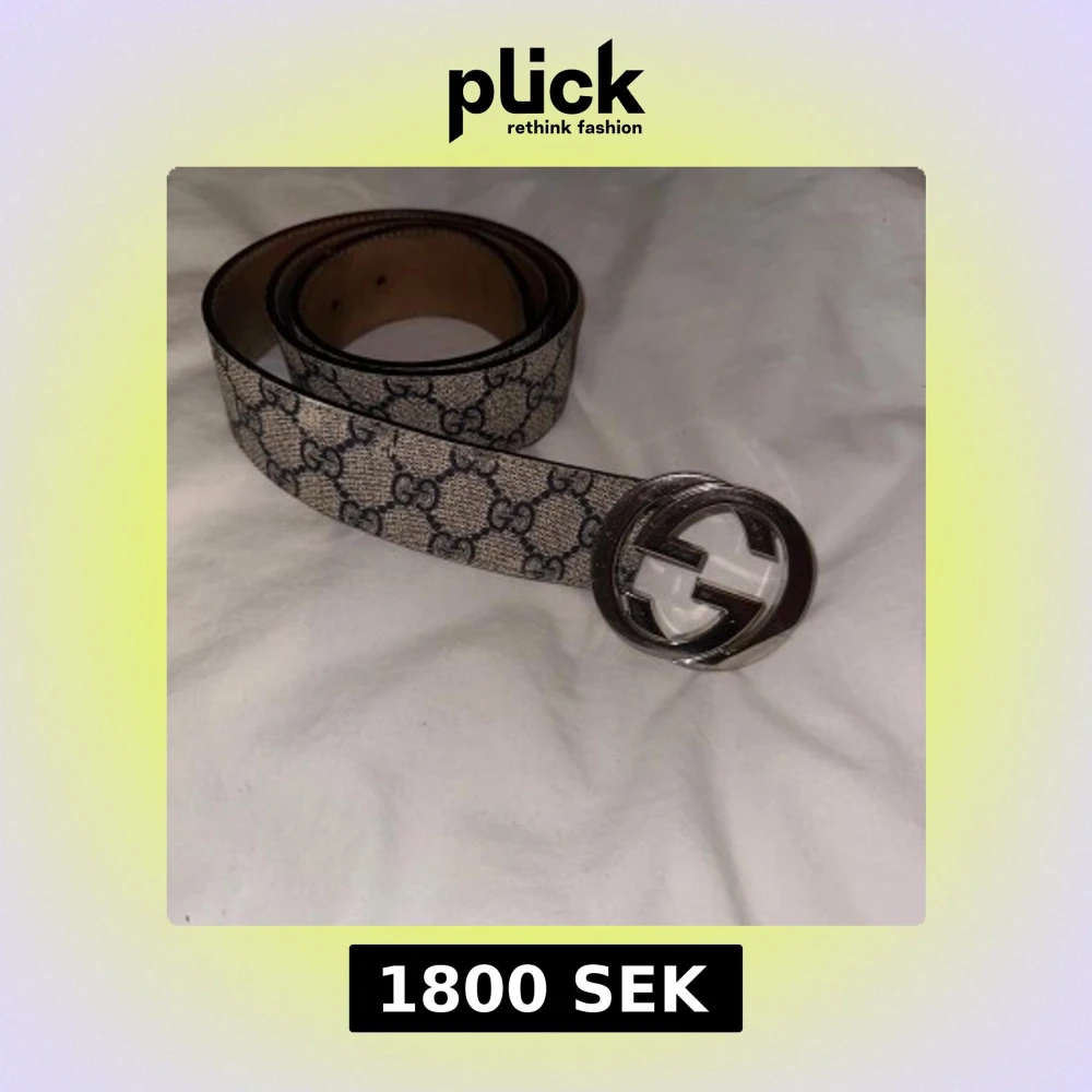 Snyggt bälte från Gucci med klassiskt mönster och en iögonfallande silverfärgad spänne. Bältet har en beige och blå färgkombination som ger en tidlös look. Perfekt för att lyfta vilken outfit som helst.