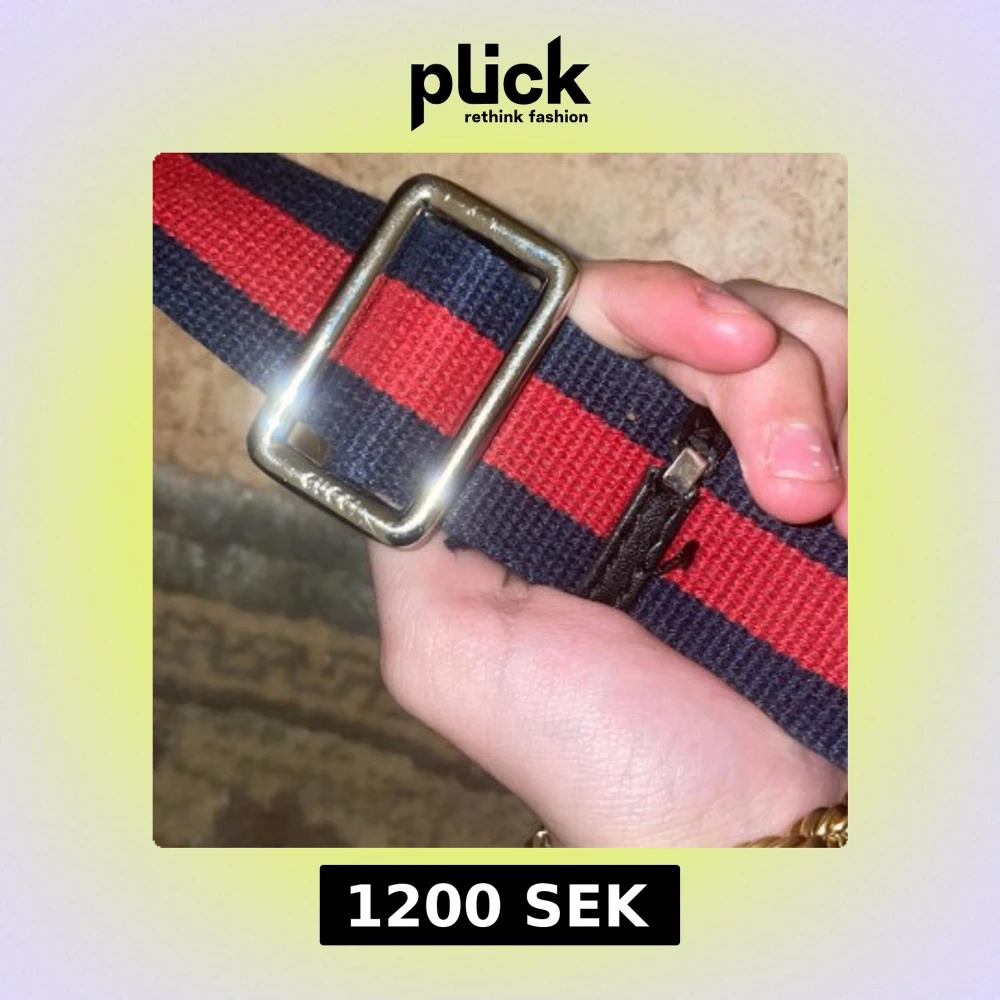 Snyggt axelväska från Gucci med klassiskt randigt mönster i rött och mörkblått. . Perfekt accessoar för att lyfta din outfit med en lyxig touch, med fler funderingar eller frågor så är det att bara skriva. Använd max 5 gånger.