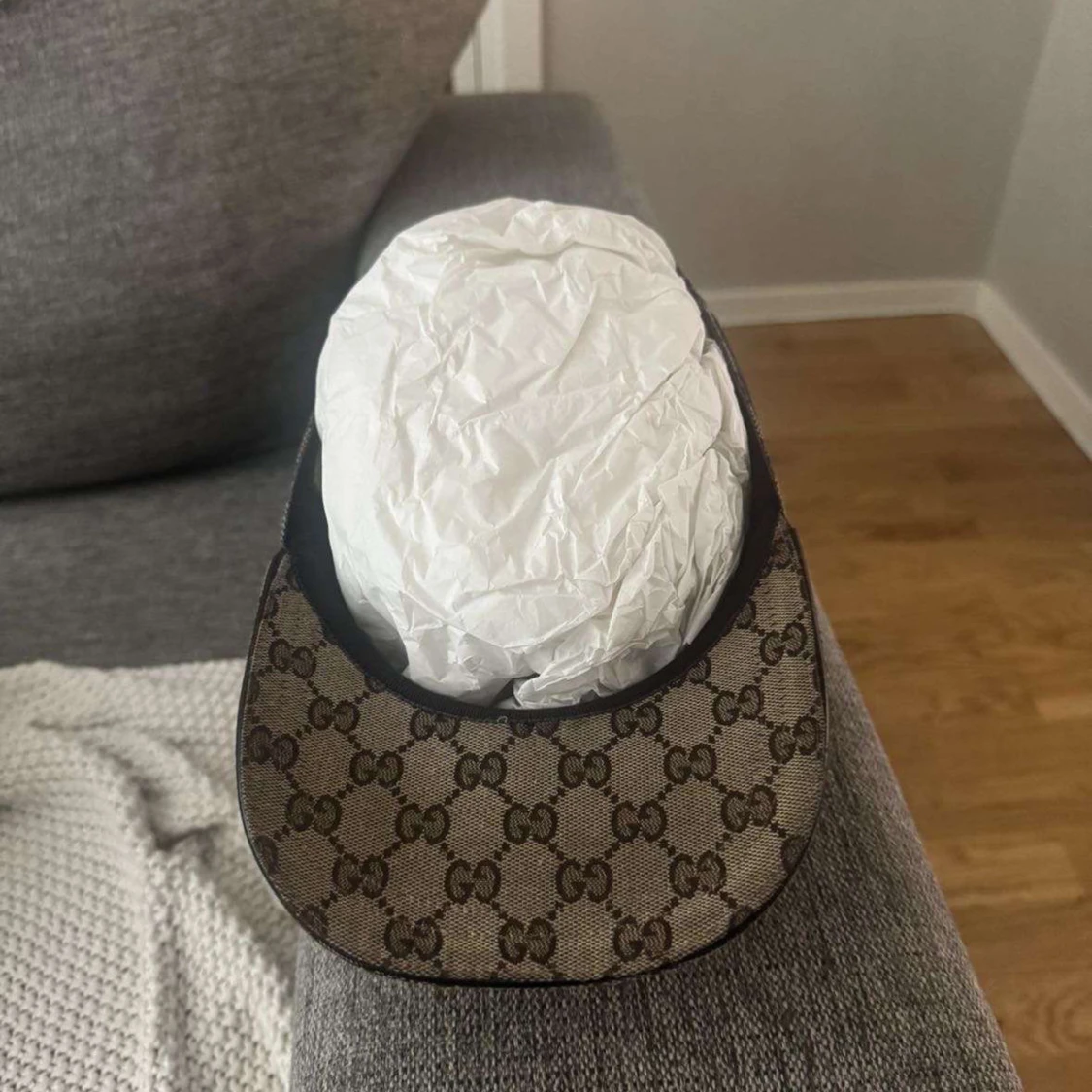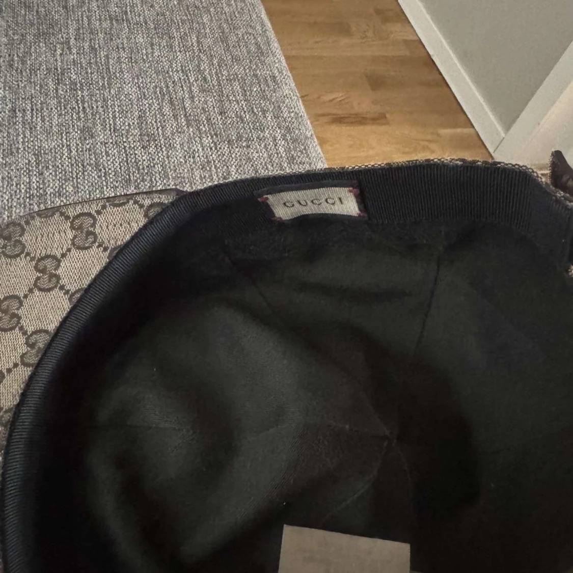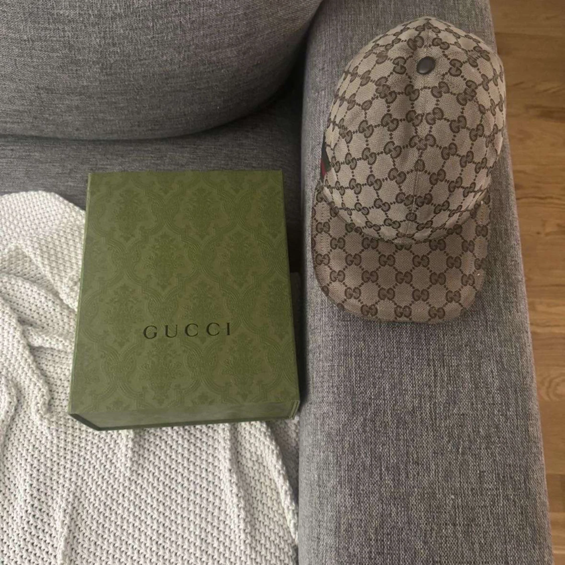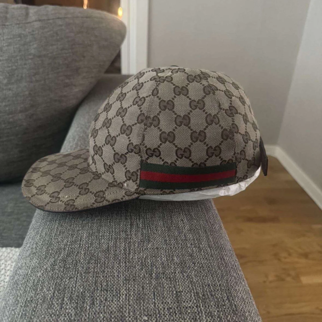 Snygg keps från Gucci i beige med klassiskt GG-monogram över hela kepsen. Skärmen är böjd och kepsen har en stilren form. Materialet är canvas med insida i svart tyg. Perfekt för dig som vill sticka ut med en lyxig accessoar. ÄKTA