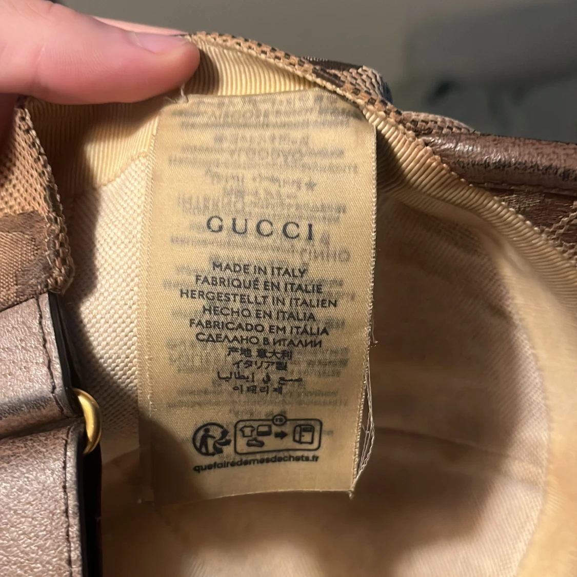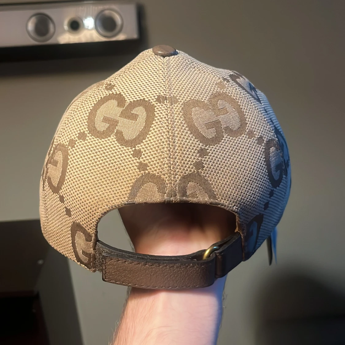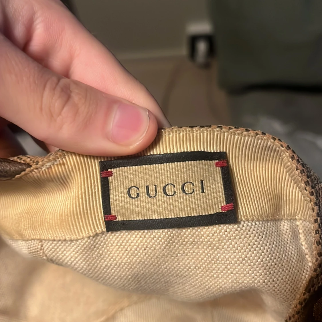 Snygg beige keps från Gucci med klassiskt GG-monogram i brunt över hela kepsen. Justerbar rem baktill i brunt skinn och detaljer i samma färg. Tillverkad i Italien och har en exklusiv känsla med sitt ikoniska mönster och materialval. Kvitto finns men ej original box kvar.