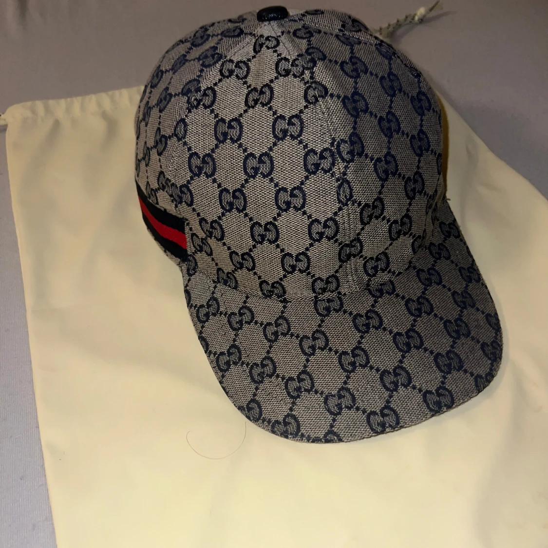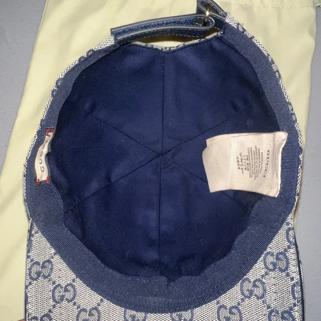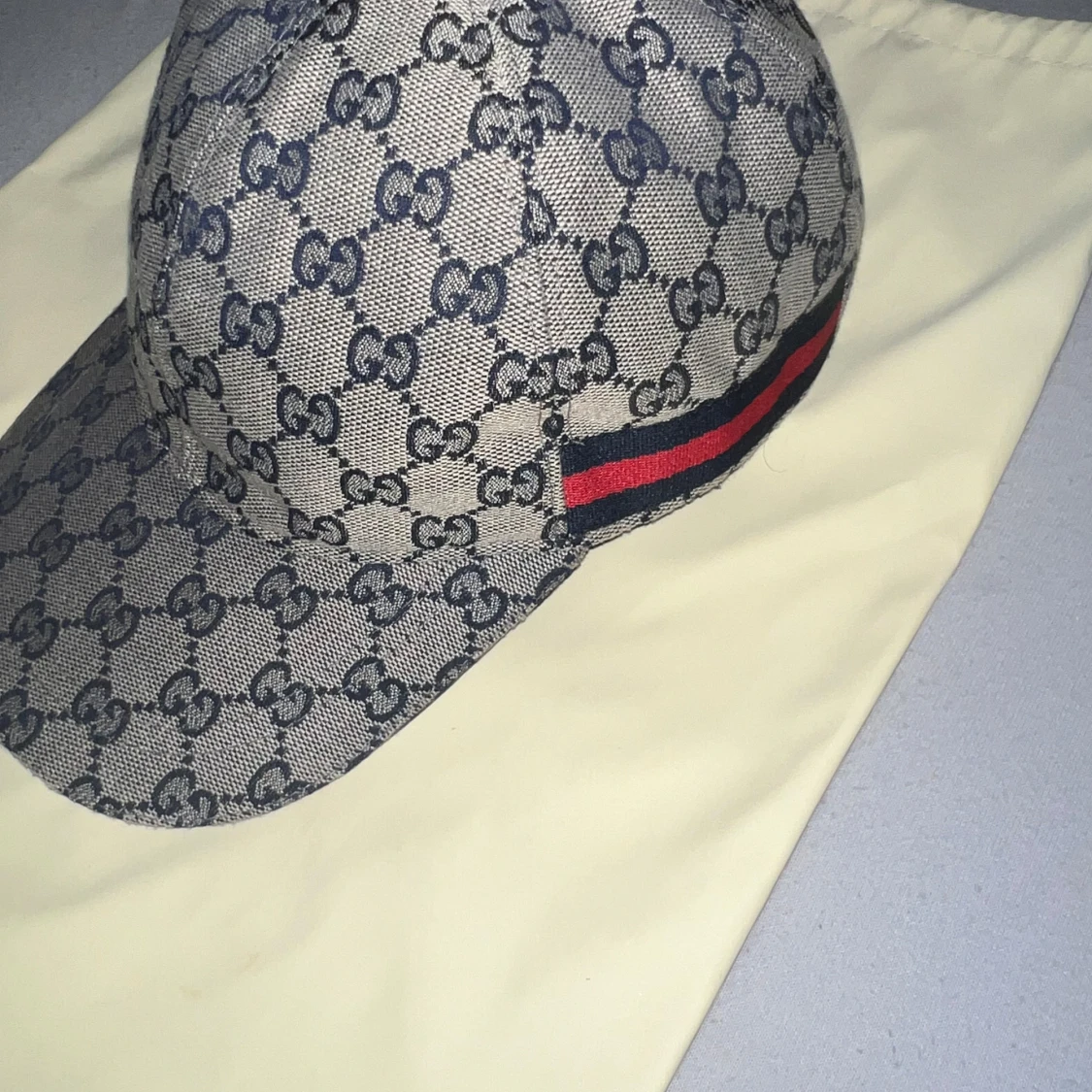 Detta är en Gucci keps som är väldigt sällsynt och har stor efterfrågan. Ränder med färgen navyblue och beige. Använd 3-4 gånger! Topp skick. Först till kvar!🚨
