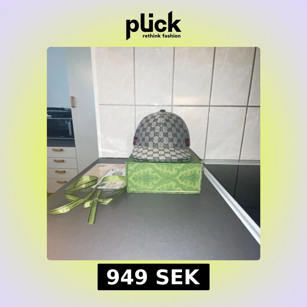 Säljer en exklusiv Gucci keps i beige och marinblått med klassiskt GG-monogram över hela kepsen. Kepsen har justerbar rem bak och ikoniska röd-gröna ränder på sidorna. Tillverkad i bomullscanvas och levereras med originalkartong och band.