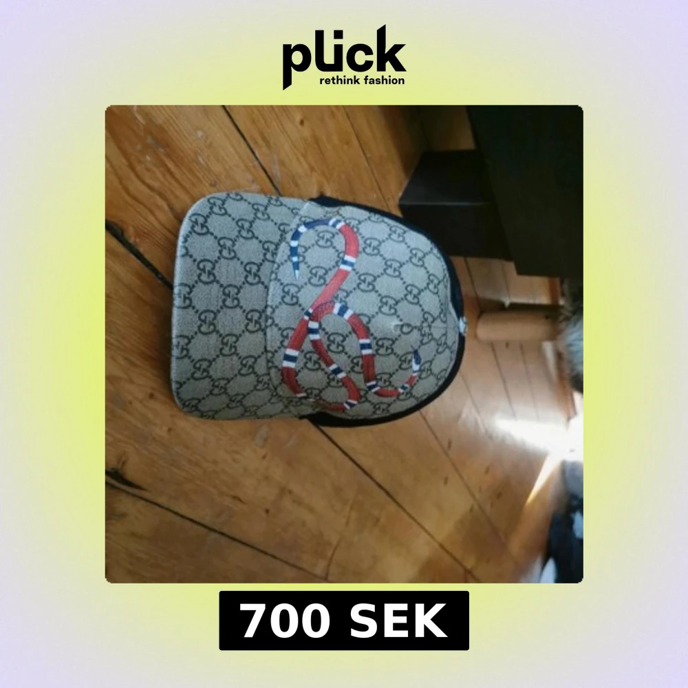 Snygg keps från Gucci med klassiskt GG-mönster i beige och svart, prydd med en röd, vit och blå orm på framsidan. Baksidan är i svart mesh med justerbart band och röd/grön detalj. Perfekt för dig som vill sticka ut med lyxig streetstyle.