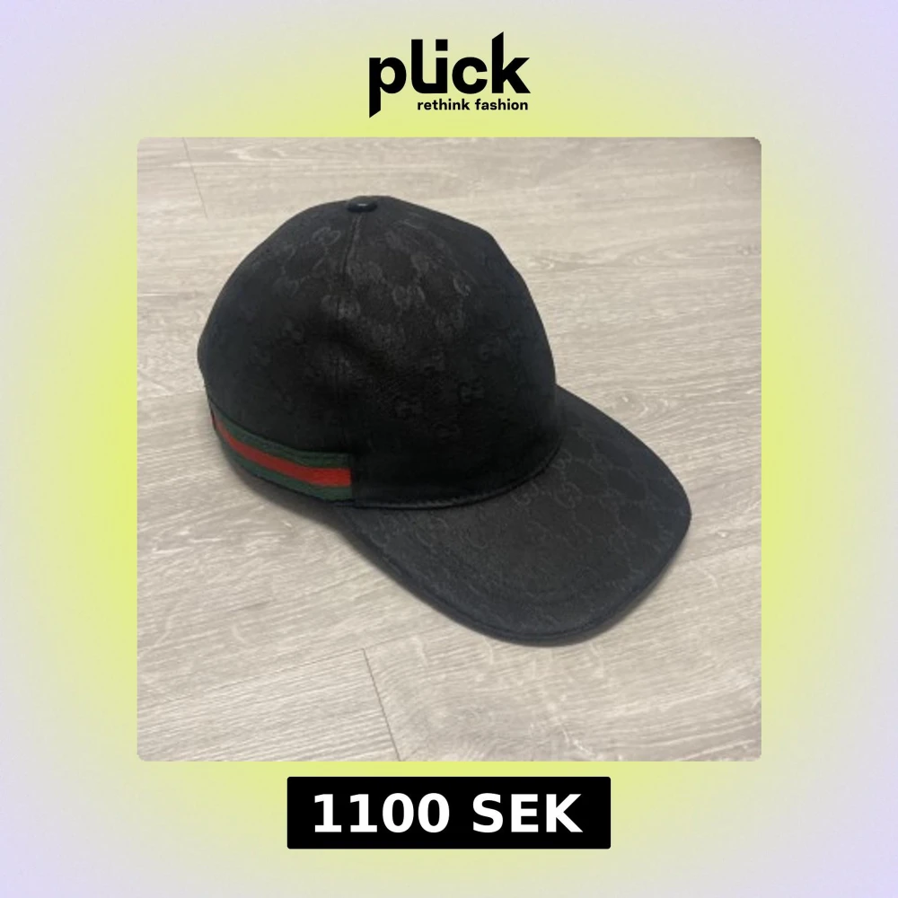(Ny färgad) Snygg Gucci keps med diskret GG-monogram över hela ytan. Klassisk böjd skärm och justerbar rem baktill. Sidan pryds av Guccis ikoniska gröna och röda rand. Perfekt accessoar för en trendig streetstyle-look.