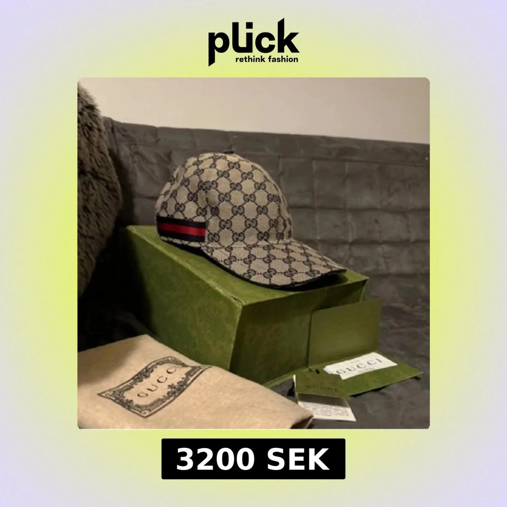 Snygg keps från Gucci i beige med klassiskt GG-monogram över hela kepsen. Har en ikonisk röd och marinblå rand på sidan. | Självklart äkta, köpt på Gucci butiken i Norrmalm | Kvitto och äktenbevishet finns /Mvh Nitro 🥰