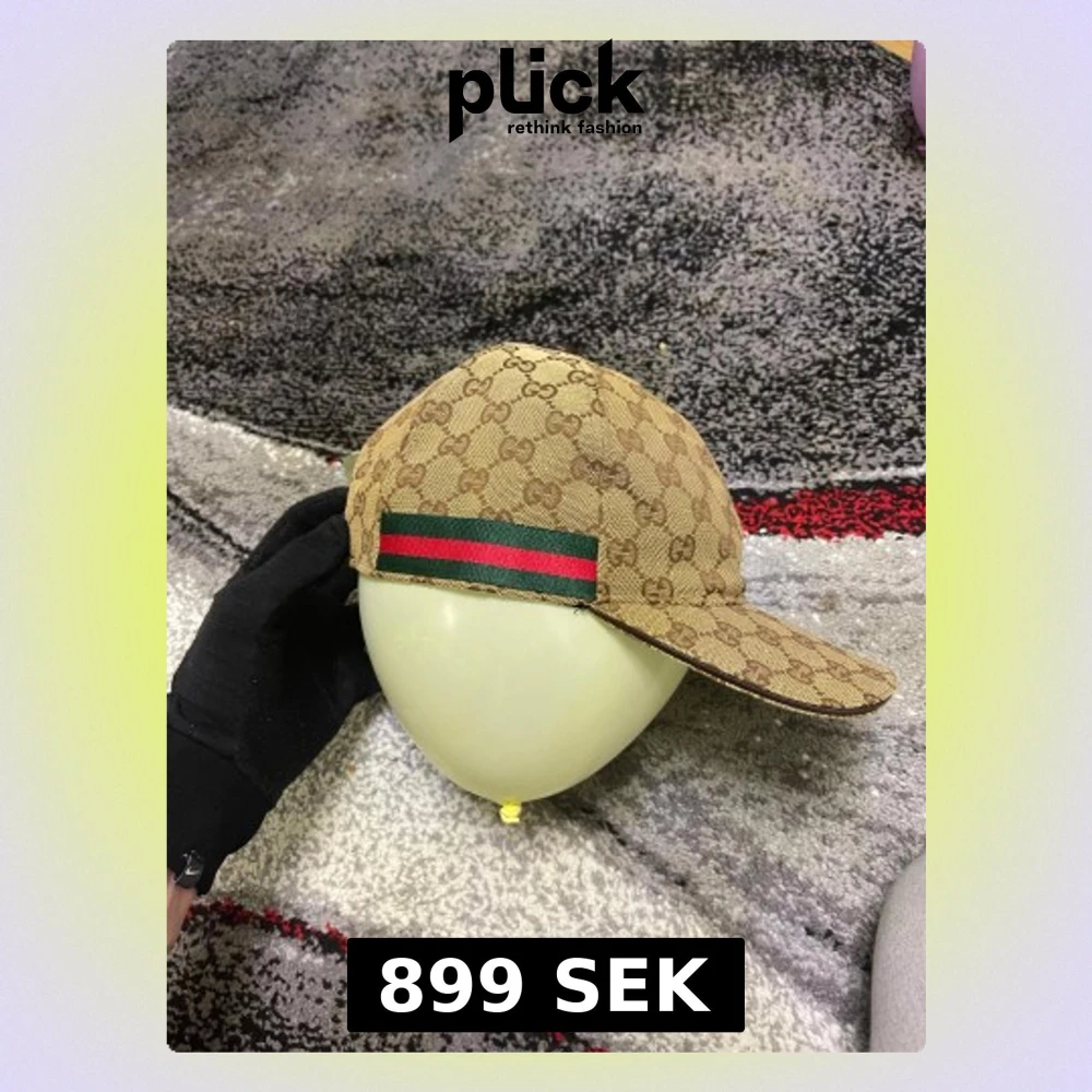 Snygg beige keps från Gucci med klassiskt GG-mönster i brunt och en grön-röd rand på sidan. Justerbar rem baktill i mörkbrunt skinn. Perfekt för dig som vill ha en lyxig och trendig look. Materialet är slitstark bomull med detaljer i skinn.