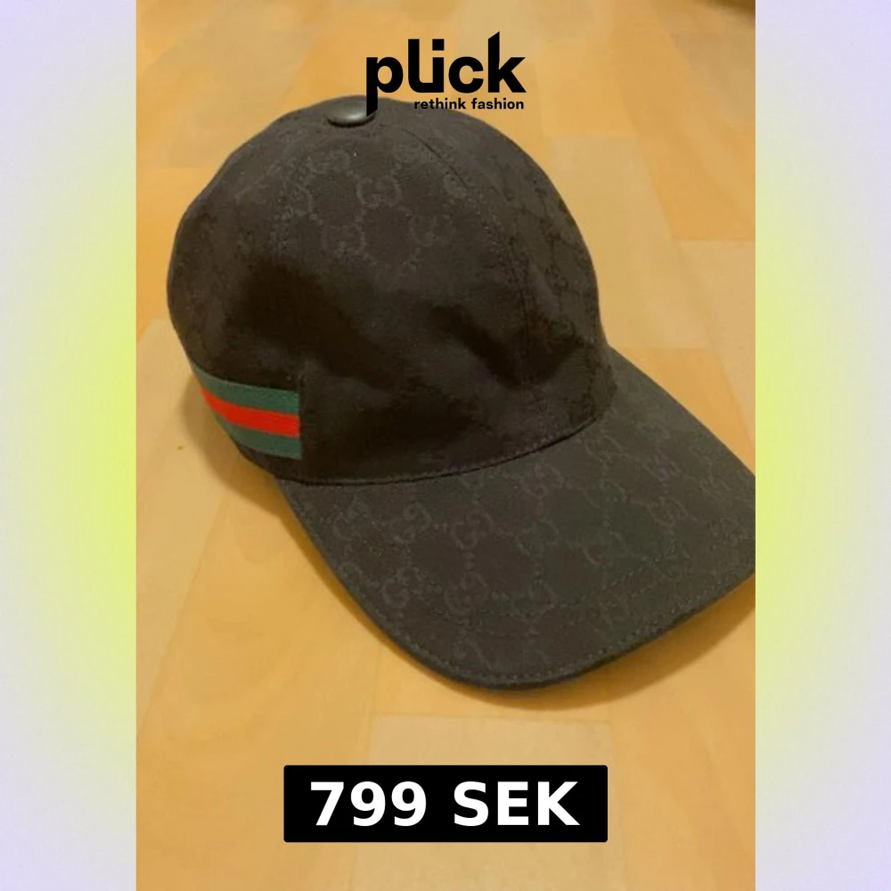 Svart keps från Gucci med diskret GG-monogram över hela ytan och klassiska gröna och röda ränder på sidan. Kepsen har böjd skärm och justerbar rem baktill i metall. Tillverkad i bomull med insida i mörkt tyg. Perfekt för dig som gillar lyxiga streetwear-vibes.