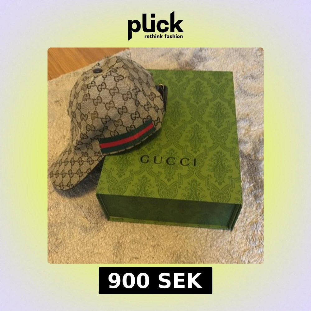 Exklusiv keps från Gucci i beige med klassiskt GG-monogram över hela kepsen. Snygg detalj med grönt och rött band på sidorna. Justerbar rem baktill i skinn och insida i svart tyg. Perfekt för dig som vill sticka ut med en ikonisk accessoar.