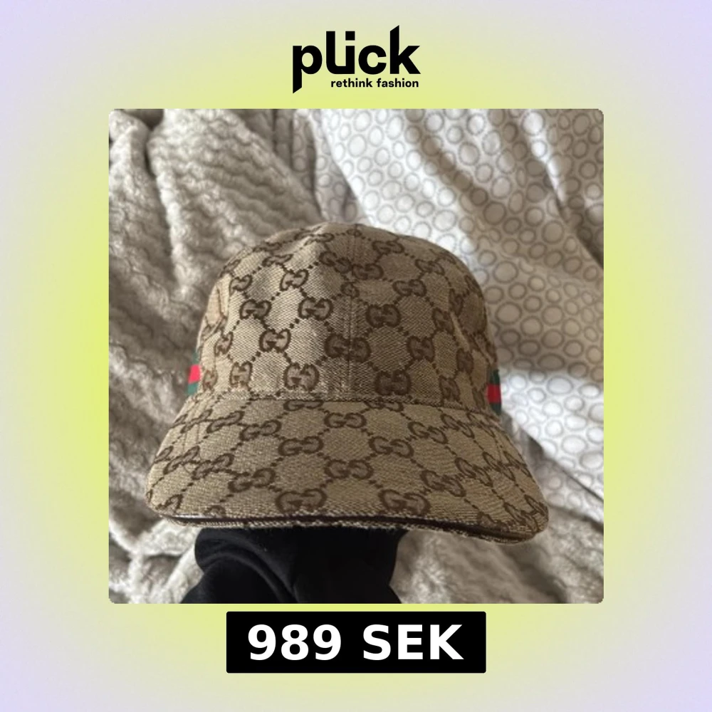 Säljer en beige keps från Gucci med klassiskt GG-monogram över hela kepsen. Den har justerbar rem bak i mörkbrunt skinn och detaljer i grönt och rött på sidorna. Materialet är bomull och kepsen är tillverkad i Italien. Perfekt för dig som vill ha en lyxig streetstyle.