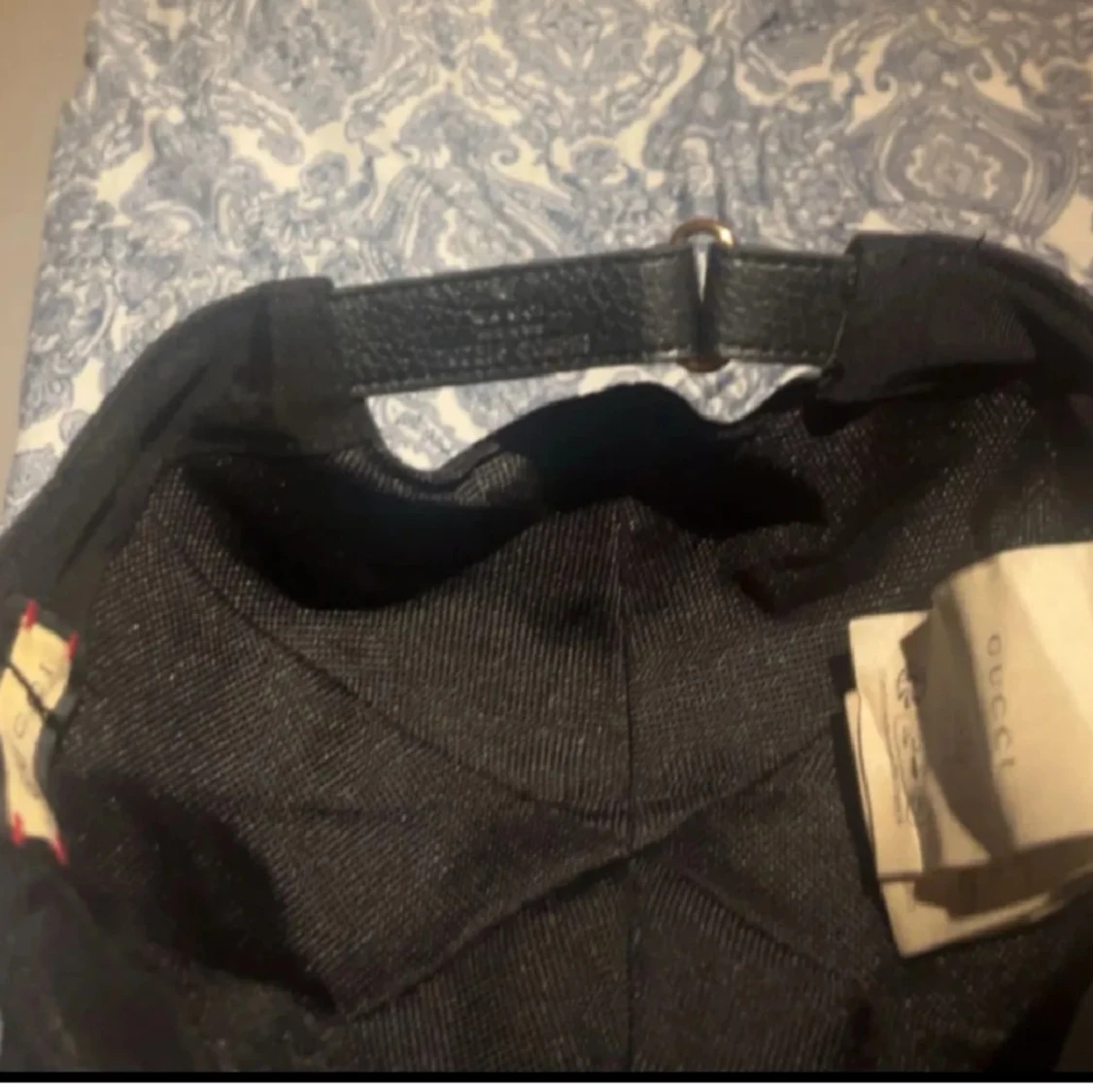 Svart keps från Gucci med klassiskt GG-monogram över hela kepsen och ikoniska gröna och röda ränder på sidan. Justerbar rem baktill i skinn och tillverkad i Italien. Snygg och stilren accessoar för dig som gillar lyxiga detaljer.