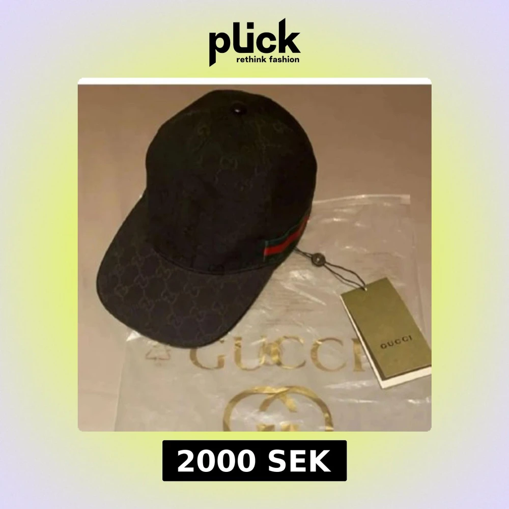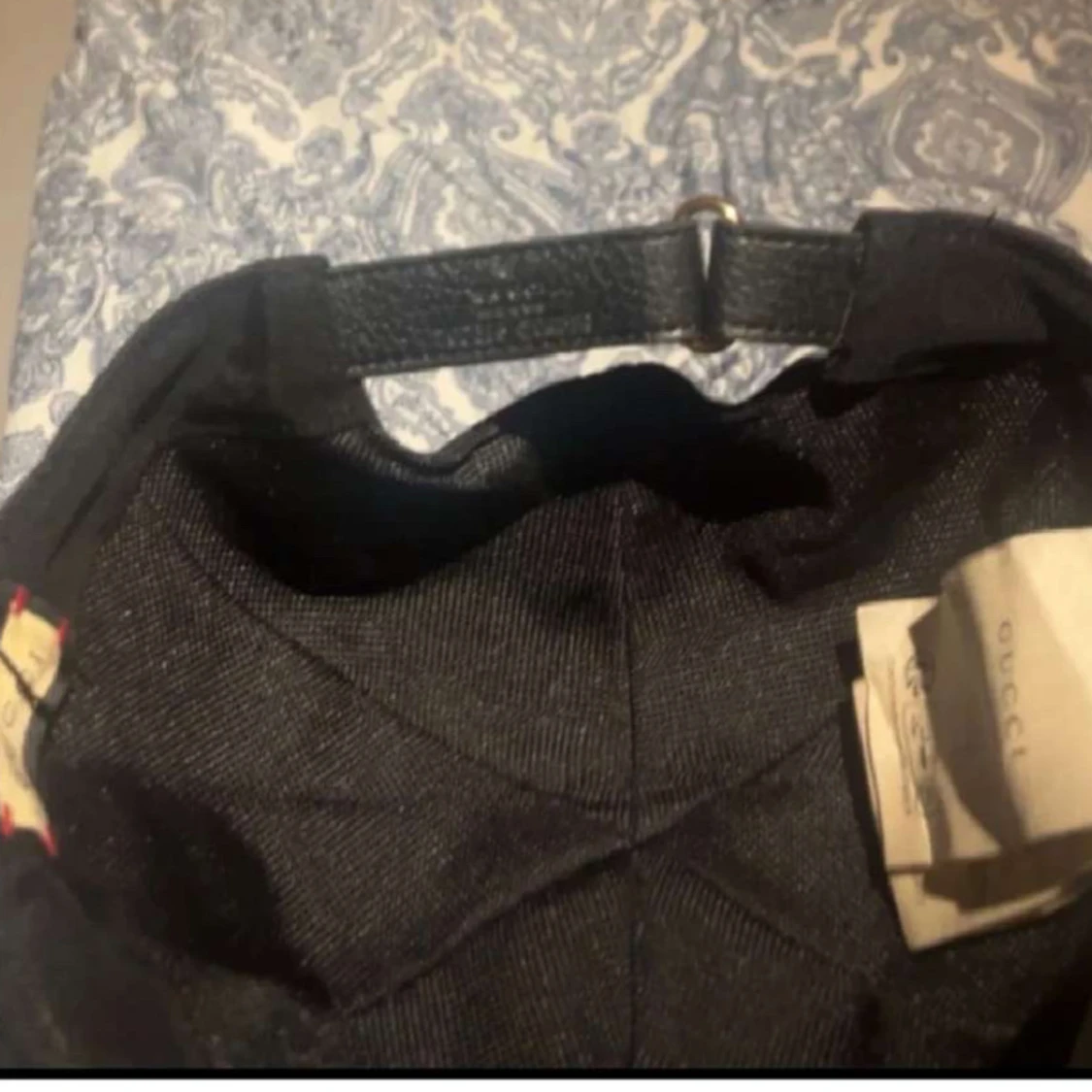 Svart keps från Gucci med klassiskt GG-monogram över hela kepsen och ikoniskt grönt och rött band på sidan. Justerbar rem baktill i skinn. Tillverkad i Italien och levereras med originalpåse och tagg. Perfekt för dig som vill ha en lyxig och stilren accessoar.