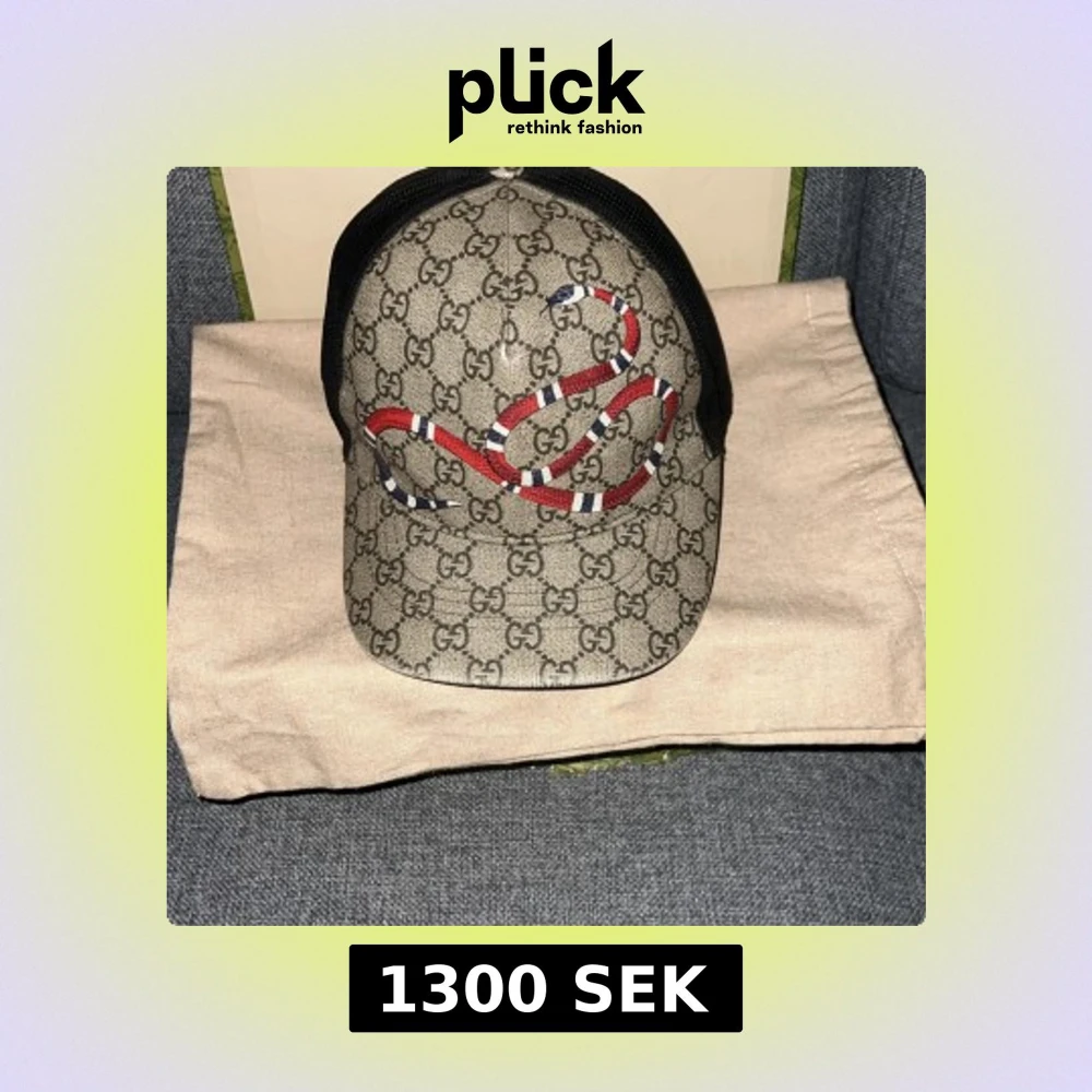 Säljer en snygg äkta beige orm keps från Gucci. Kepsen har en svart baksida och justerbart band för perfekt passform. Perfekt för att ge din outfit en lyxig touch. Kepsen är äkta ,det kan man se på mönstren men kvittot saknas. Påse och box följer med, boxen är lite skadad men det är nästan osynligt.