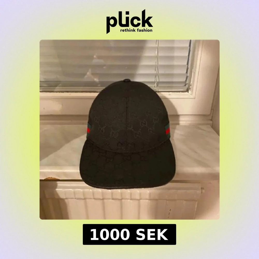 Snygg svart keps från Gucci med diskret GG-monogram över hela kepsen. Klassisk böjd skärm och justerbart spänne bak i svart skinn. Sidorna har gröna och röda ränder som ger den ikoniska Gucci-looken. Perfekt accessoar för att lyfta din outfit.
