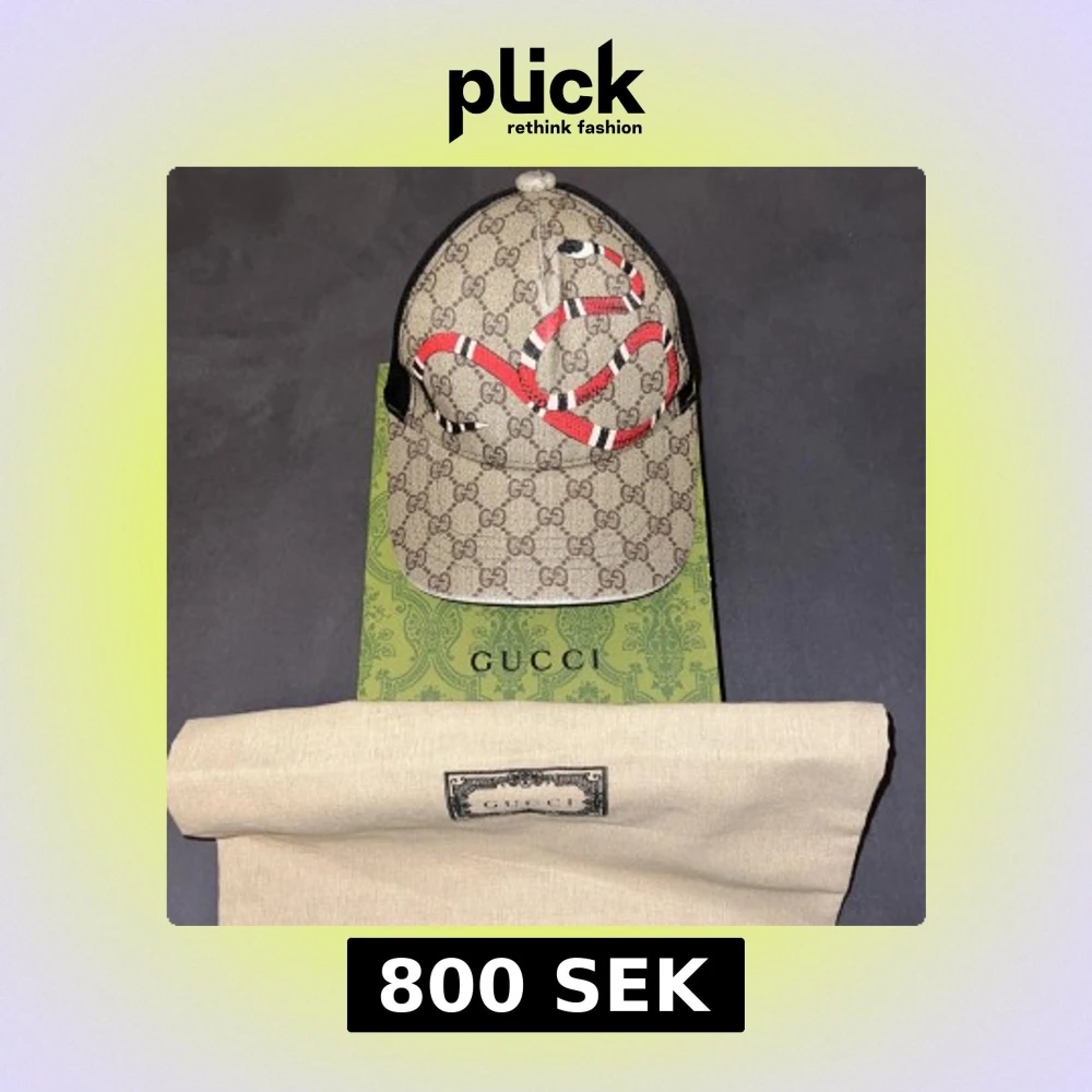Snygg keps från Gucci med ett iögonfallande ormmotiv i rött, vitt och svart. Kepsen har det klassiska Gucci-mönstret i beige och brunt. Perfekt för att ge din outfit en lyxig touch.
