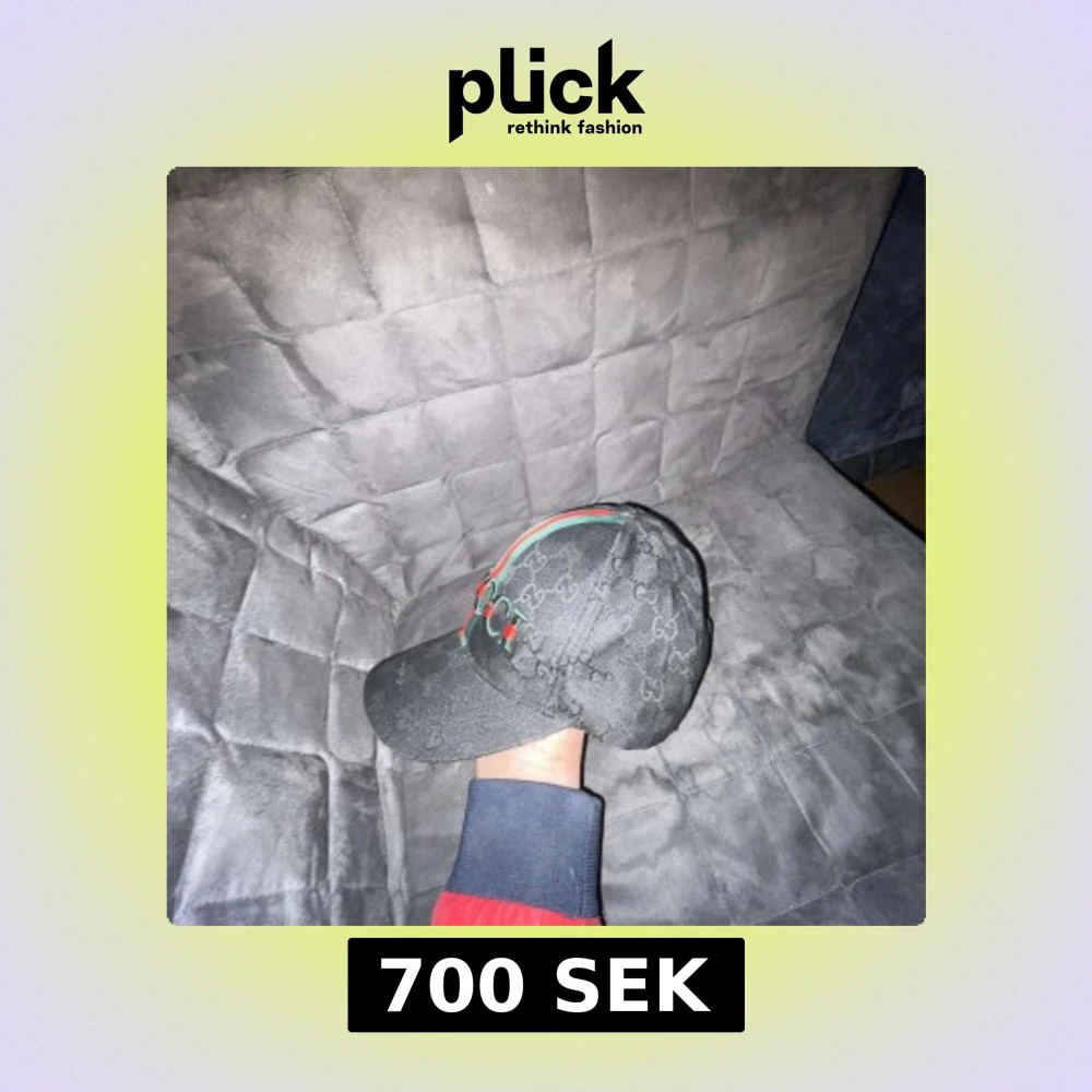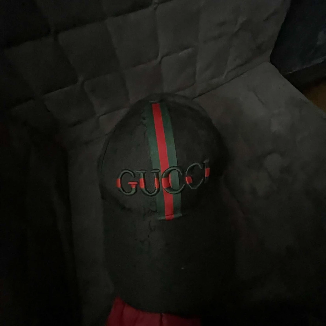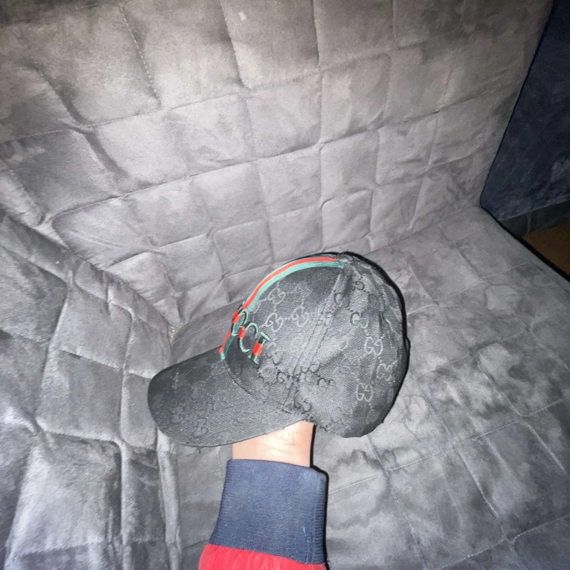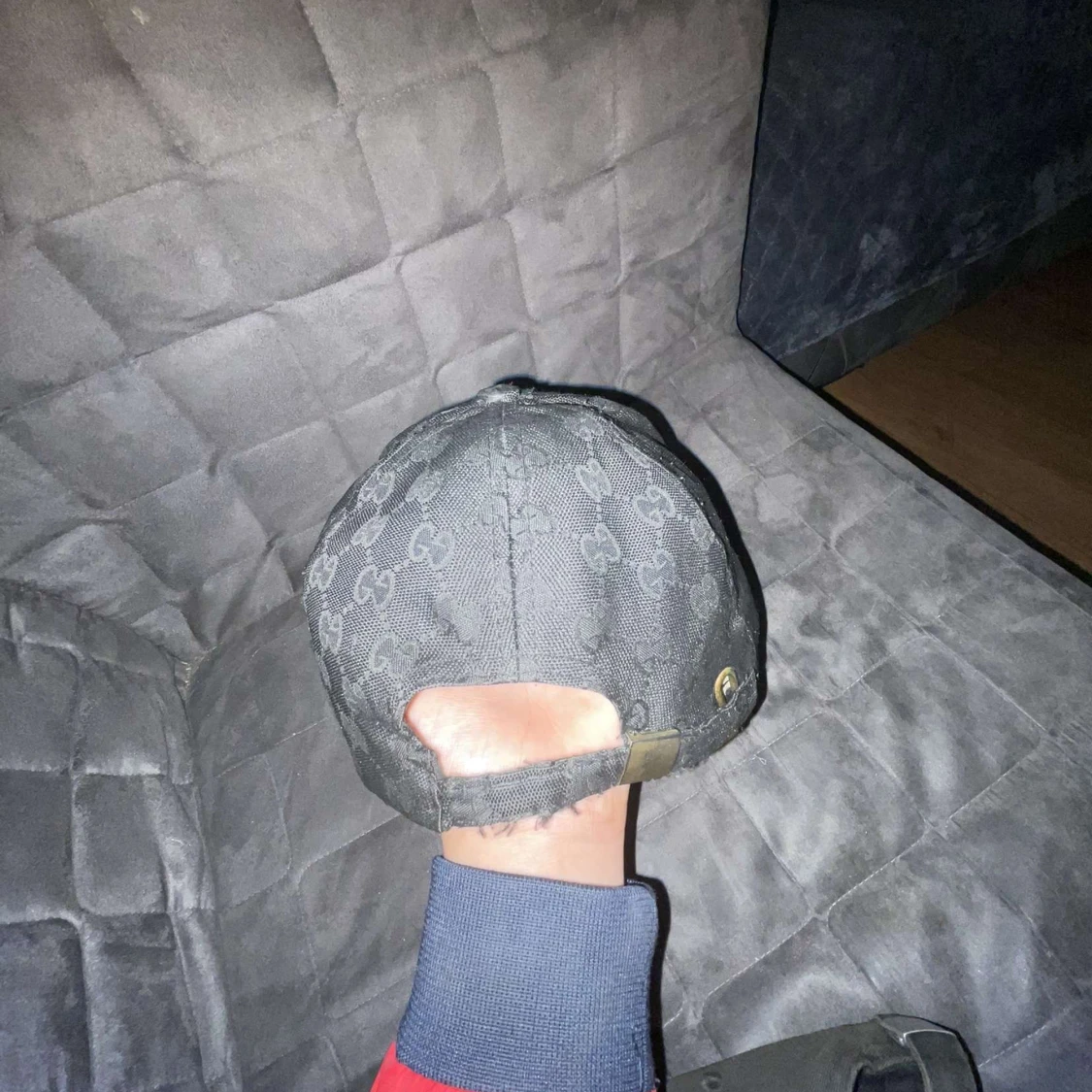 Svart keps från Gucci med diskret GG-mönster över hela kepsen och broderad logga framtill. Kepsen har gröna och röda ränder längs ovansidan och justerbart spänne bak. Snygg och klassisk design.