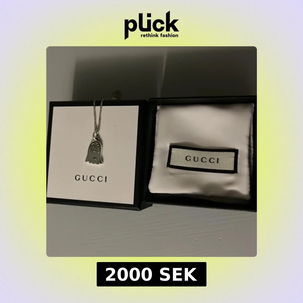 Unikt halsband från Gucci i silverfärg med ett spökhänge dekorerat med GG-loggor. Kedjan är tunn och smidig, perfekt för dig som gillar statement-smycken med en lekfull twist. Halsbandet är silver och samma med Gucci spöket