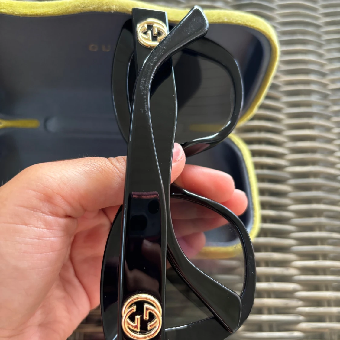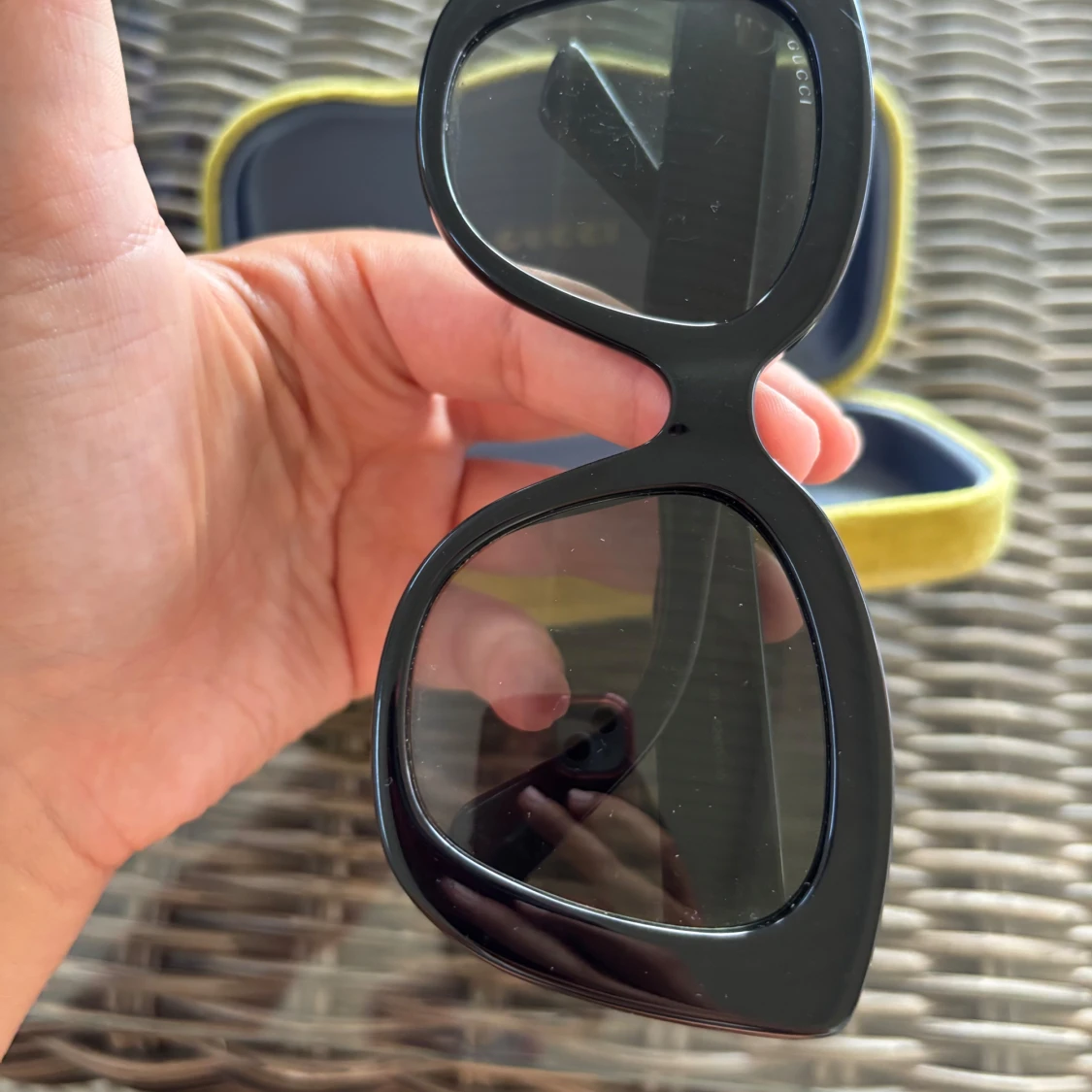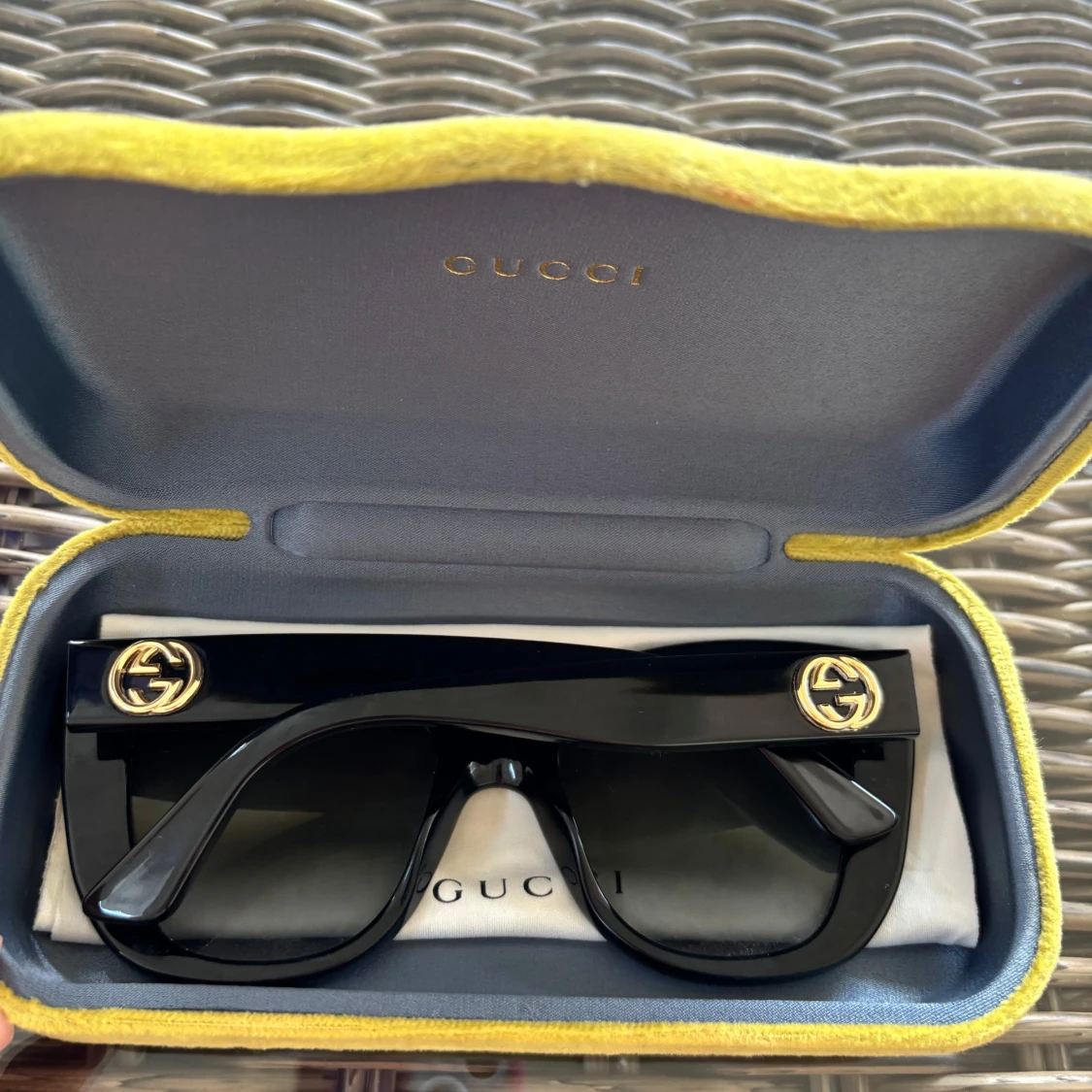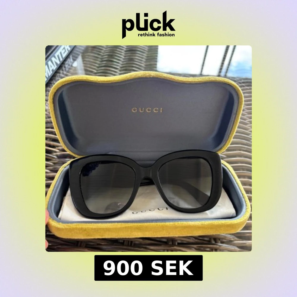 Säljer mina fina solglasögon från Gucci. Använda sedan 2023, alltså finns repor. Modellen är gg0327s. Köptes på Synsam. Boxen och duk medföljer.