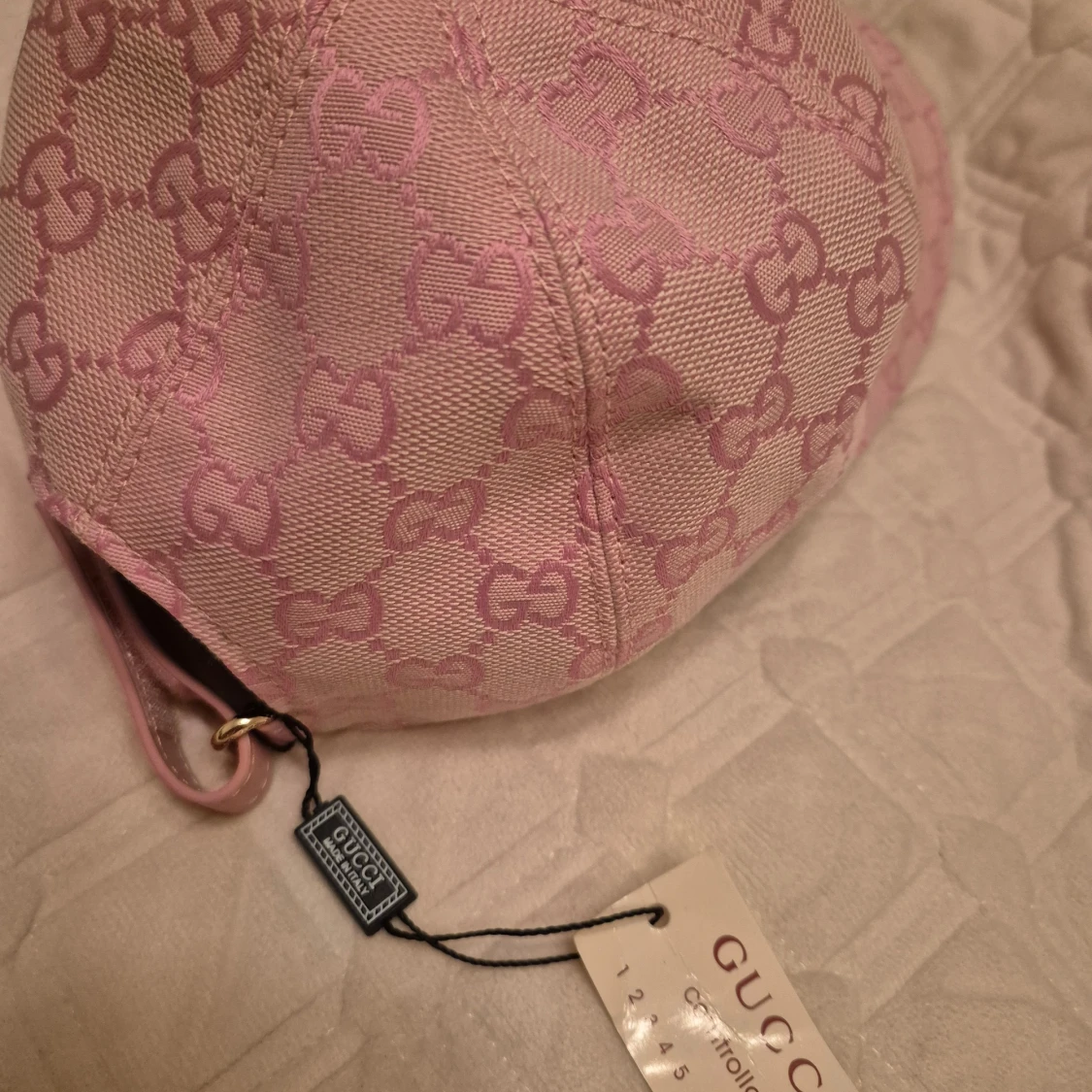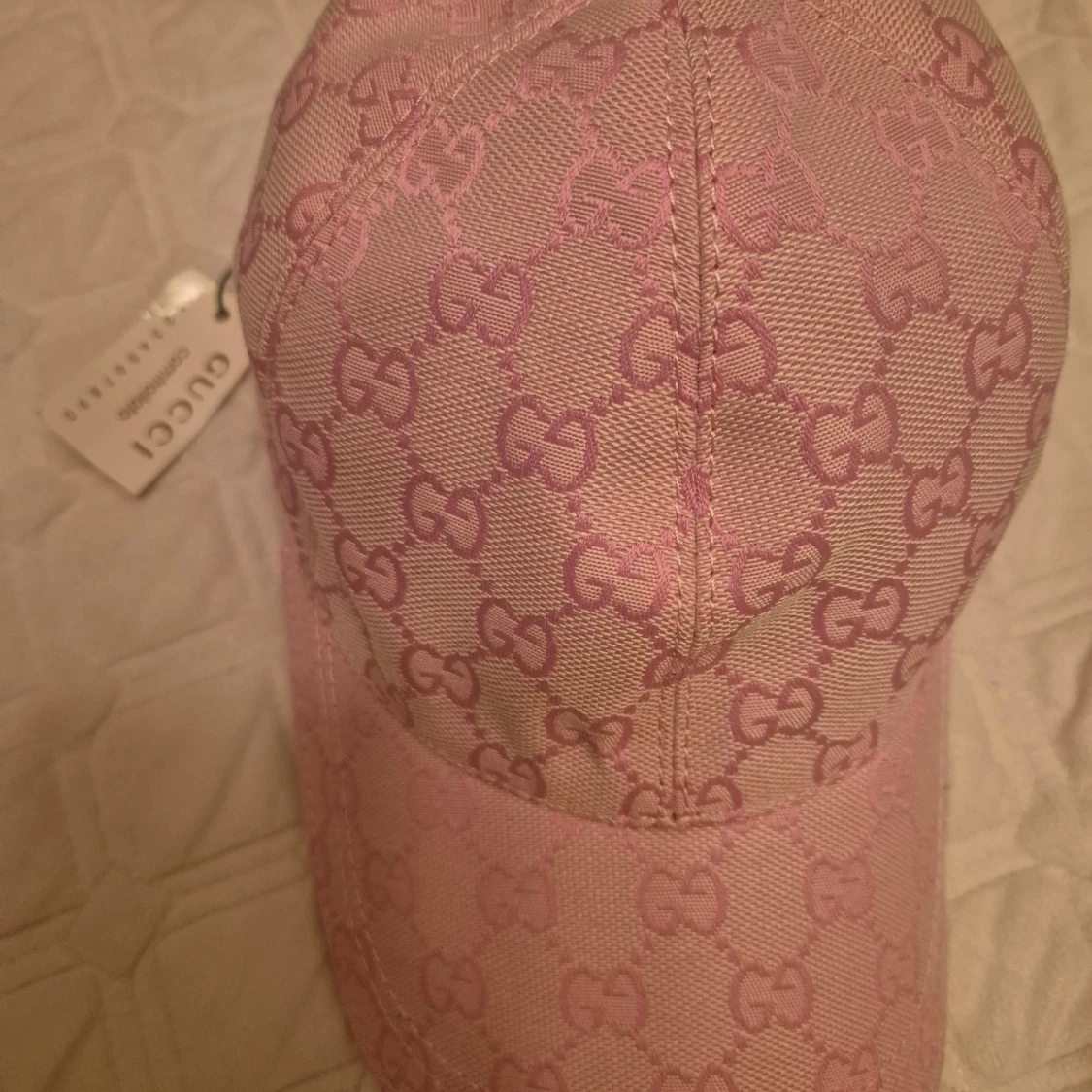 Snygg rosa keps från Gucci med deras ikoniska mönster. Kepsen har en justerbar rem baktill för perfekt passform. Perfekt för att ge din outfit en lyxig touch.