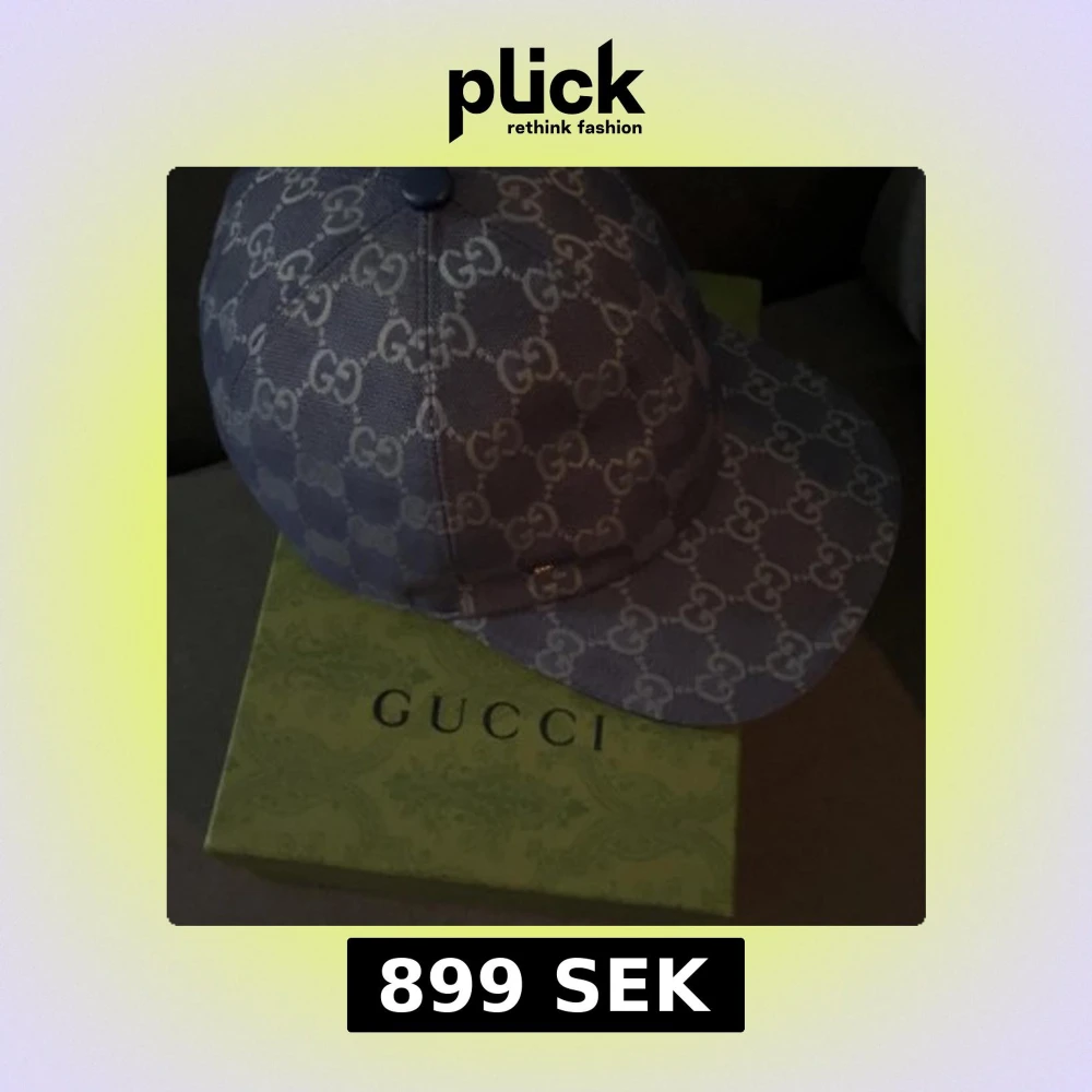 Säljer en snygg grå keps från Gucci med klassiskt GG-monogram i vitt. Kepsen har böjd skärm och justerbar passform. Perfekt för dig som gillar exklusiva accessoarer och vill sticka ut med stil.