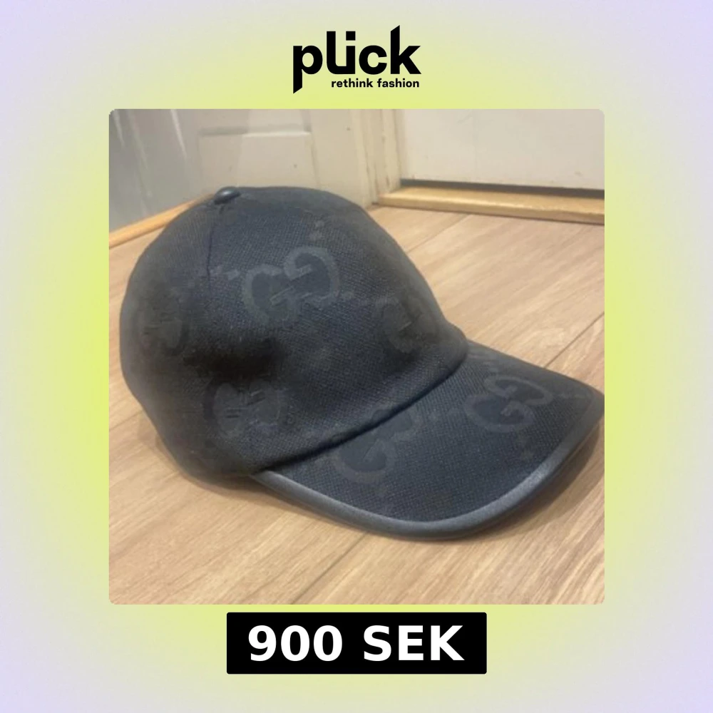 Säljer en svart keps från Gucci med diskret GG-mönster över hela kepsen. Kepsen har böjd skärm och justerbart spänne bak i skinn. Klassisk och stilren design med märkets logga invävd i tyget.