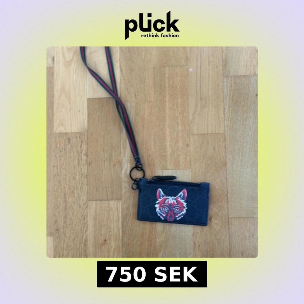 Säljer en svart plånbok från Gucci med broderat vargmotiv på framsidan. Plånboken har dragkedja och avtagbart axelband i rött och grönt. Perfekt för att bära det viktigaste med stil. Hör av er för fler frågor eller funderingar 👍🏼