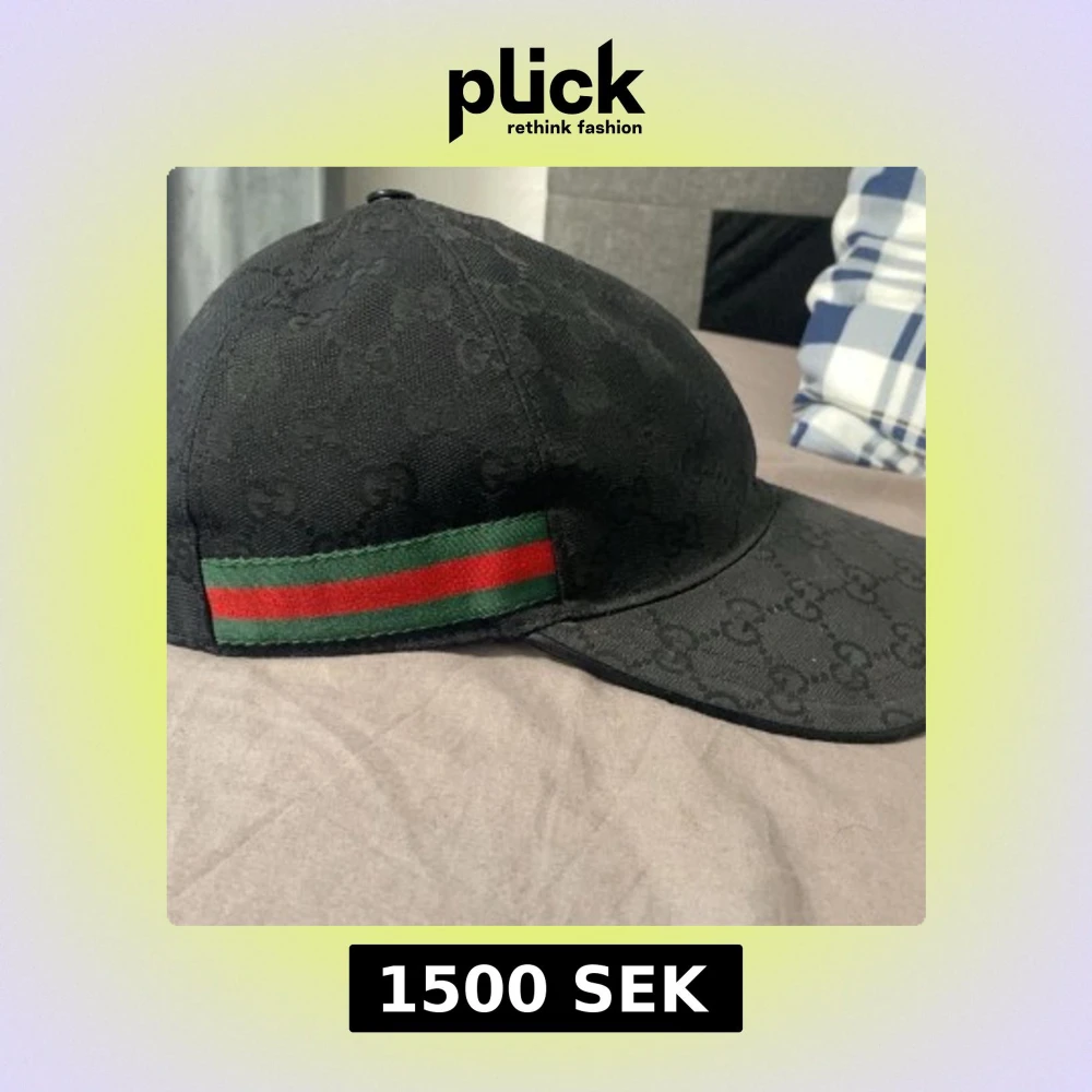 Snygg svart keps från Gucci med diskret GG-monogram över hela kepsen. Klassisk böjd skärm och ikoniska gröna och röda ränder på sidan. Tillverkad i bomullsmaterial och har justerbar rem baktill för perfekt passform. Perfekt för dig som vill ha en lyxig streetstyle-look.