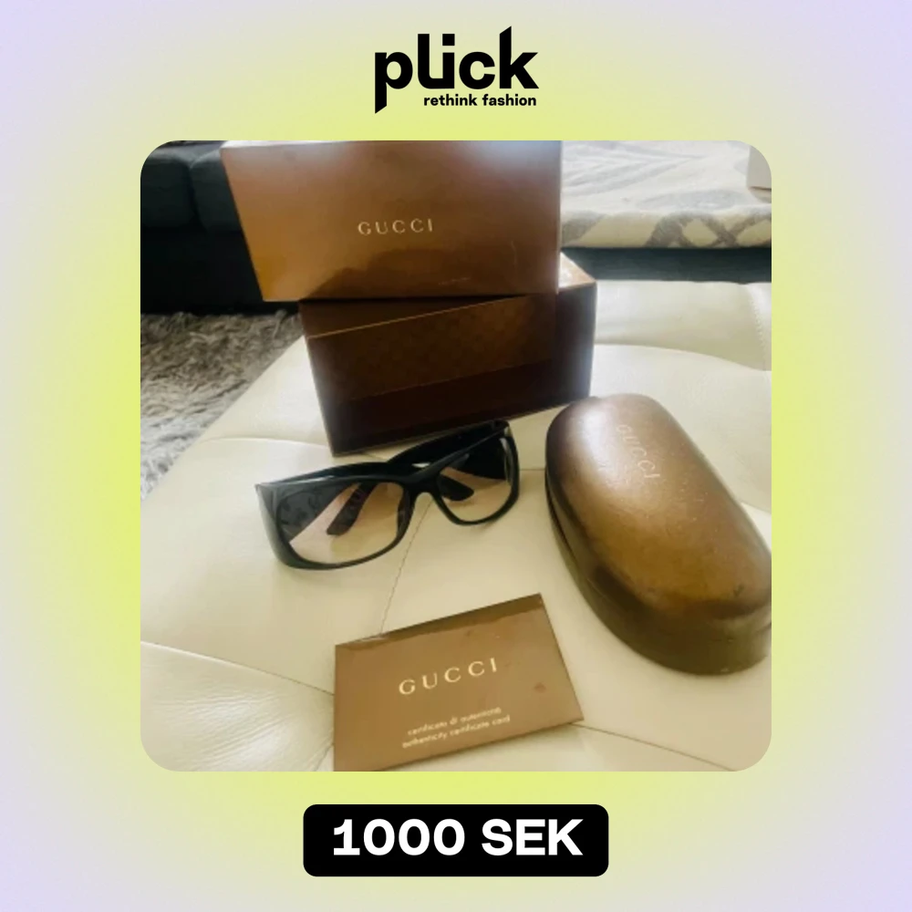 Gucci solglasögon Färg:svart halvtonade glas Använda men i gott skick inga repor Fodral i sammet något slitet men bra skick.